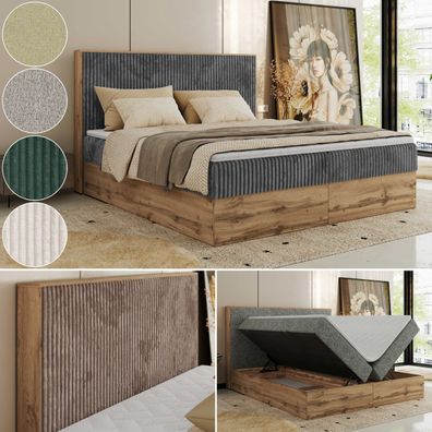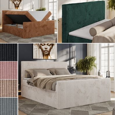 • Doppelbett Boxspringbett zwei Bettkästen, hoher Front, Cordstoff Bett - Tiliano DUO