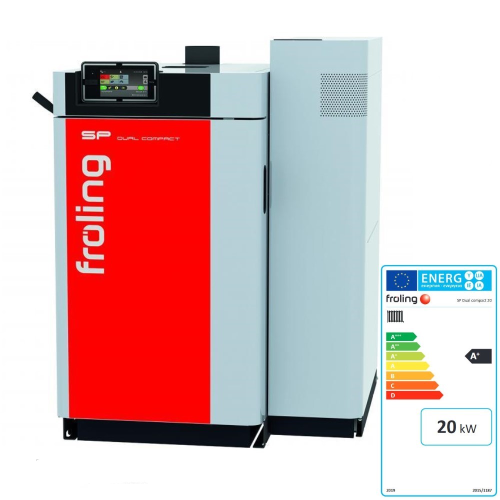 Der SP Dual compact kombiniert zwei perfekte Heizsysteme. In zwei getrennten Brennräumen erfüllt er alle Anforderungen an das Heizen mit Scheitholz und Pellets. bestehend aus: Scheitholzkessel S1 Turbo F Scheitholzkessel mit unterem Abbrand u. Hochtemperatur-Schamottbrennkammer Wirkungsgrad-Optimierungs-System WOS (halbautomatische Reinigung der Wärmetauscherflächen) großer Füllraum für Scheitholz bis 56 cm und Wassergehalt zwischen 15% und 25% (trocken gelagert) einfache Befüllung mit großer Fülltür spezielle Anheizautomatik autom. Zündung über Pelletseinheit Schwelgasabsaugung für rauchfreies Nachlegen Entaschung und Reinigung nach vorne drehzahlgeregeltes, hocheffizientes EC Saugzuggebläse zur Leistungsreg. Sicherheitsbatterie zur Kesselkühlung bei Stromausfall Schür- und Reinigungsgeräteset Pelletseinheit SP Dual compact Vollautomatischer Pelletsbrenner inkl.modulierender Pelletszuförderung zur Verfeuerung von Holzpellets aus naturbelassenem Holz mit Dm 6 mm, Brennstoff gem. EN ISO 17225, Teil 2: Holzpellets Klasse A1 / D06 Spezialretorte mit wartungsarmen wassergekühltem Pelletsbrenner inkl. selbstreinigendem Rost und darunter liegender Aschelade komplett aufisoliert und verdrahtet automatische Zündung 1 Tauchfühler (Ausschaltpunkt für Pelletseinheit) enthalten hohe Sicherheit gegen Rückbrand durch Doppelschiebersystem exterenes, frei positionierbares Pellets-Saugmodul zum Einbau in die Rückluftleitung Regelsystem Lambdatronic S 3200 Touch Mikroprozessorregelung zur optimalen Steuerung des Verbrennungsablaufes über exakte Regelung der Kessel- und Abgastemperatur, Regelung der Primär- und Sekundärluft über Stellmotoren 7" großes Farbdisplay zur Darstellung aller wichtigen Werte und Zustands- meldungen mit USB Schnittstelle für Updates, Lambdaregelung Kernmodul mit Ausgängen für: 2 Mischerheizkreise (Außenfühler ent halten) und 1 drehzahlgeregelter Pumpenausgang oder Umschaltventil Hydraulikmodul mit: 2 drehzahlgeregelte Pumpenausgänge oder 1 drehzahlgeregelter Pumpen- ausgang und 1 Umschaltventil 6 Fühlereingänge Pufferspeichermanagement m. 2 Fühlern Boilermanagement mit 1 Fühler Anlegefühler für 1 Mischerkreis optional: integrierbarer elektrostatischer Partikelabscheider automatisches WOS