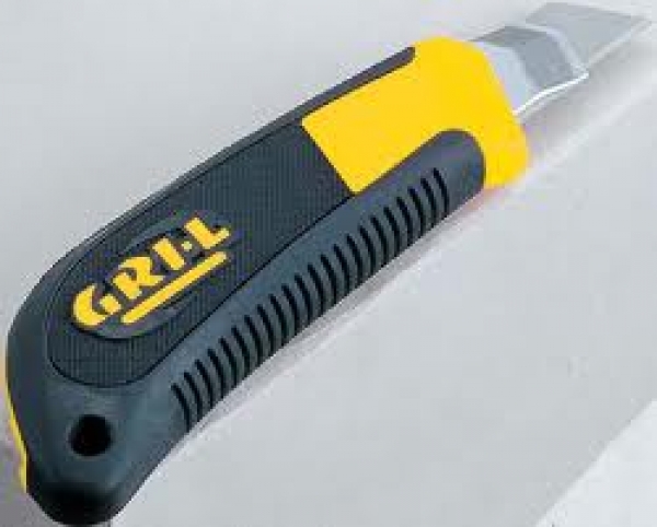 Grip Cutter Ergonomisch mit 25 mm Klingen, bestückt mit 1 ROCK HARD BLADE Klinge Auto Blade Lock ( Knopfdruck )
