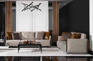 Wohnzimmer Set aus Holz und Textil in Grau und Braun modern