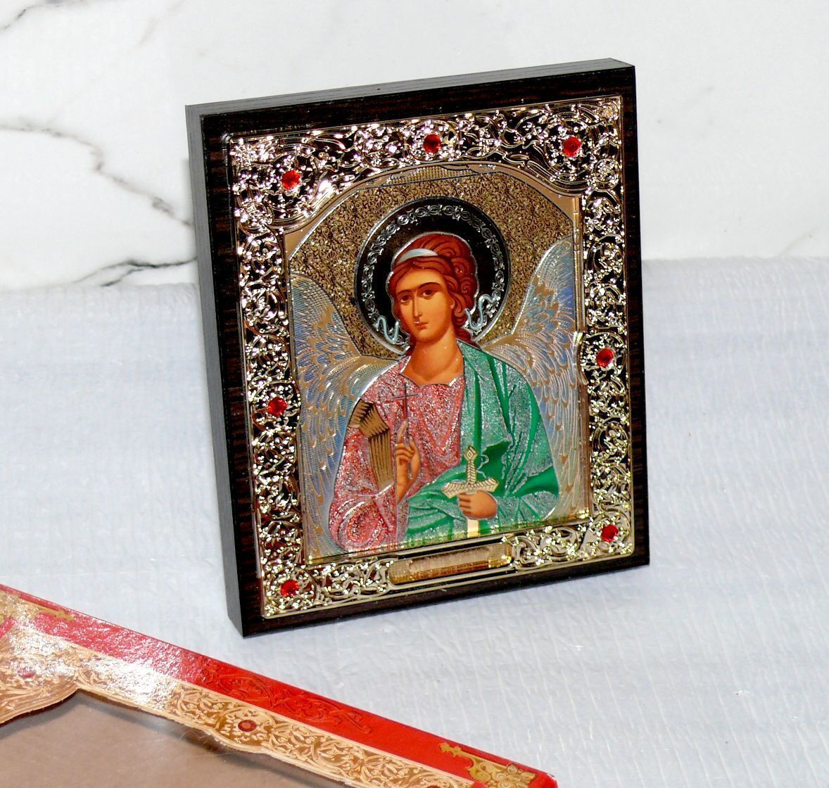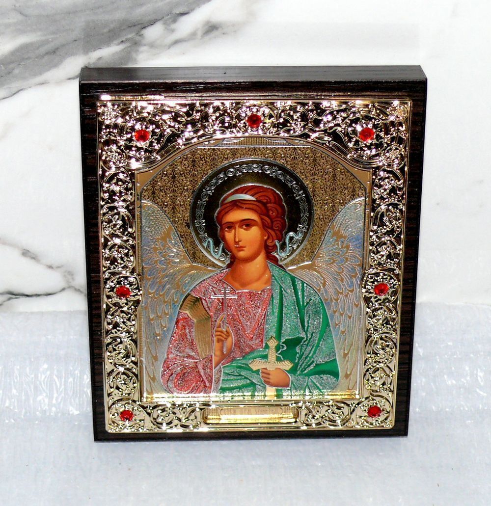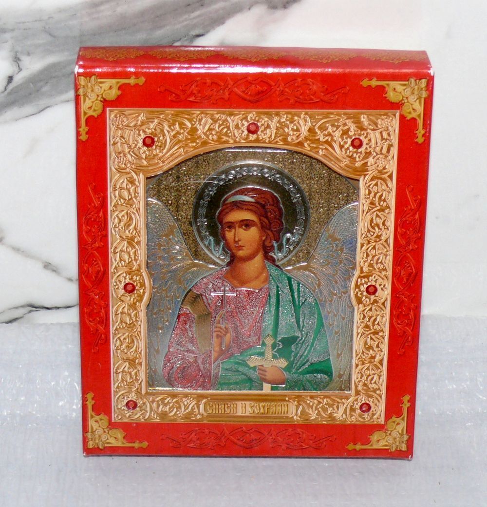 ????? Ikone Schutzengel ????? 13x11x2cm Holz-Platte Gold orthodoxe Box
