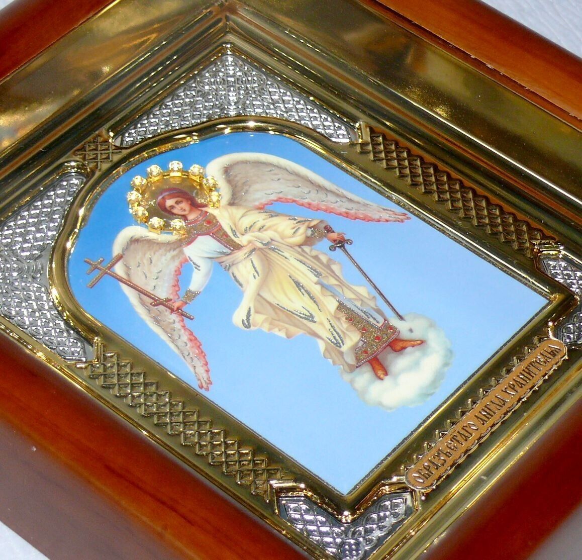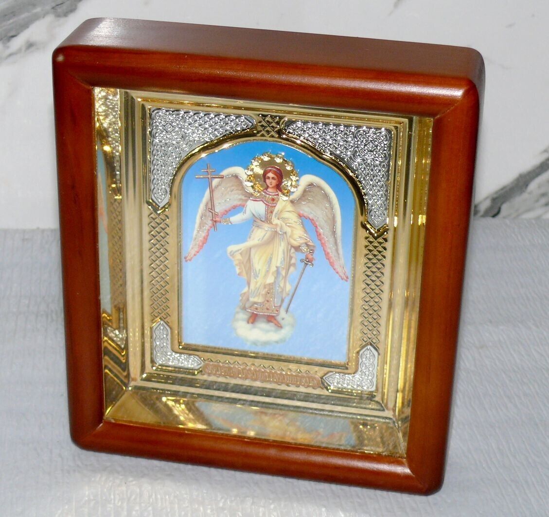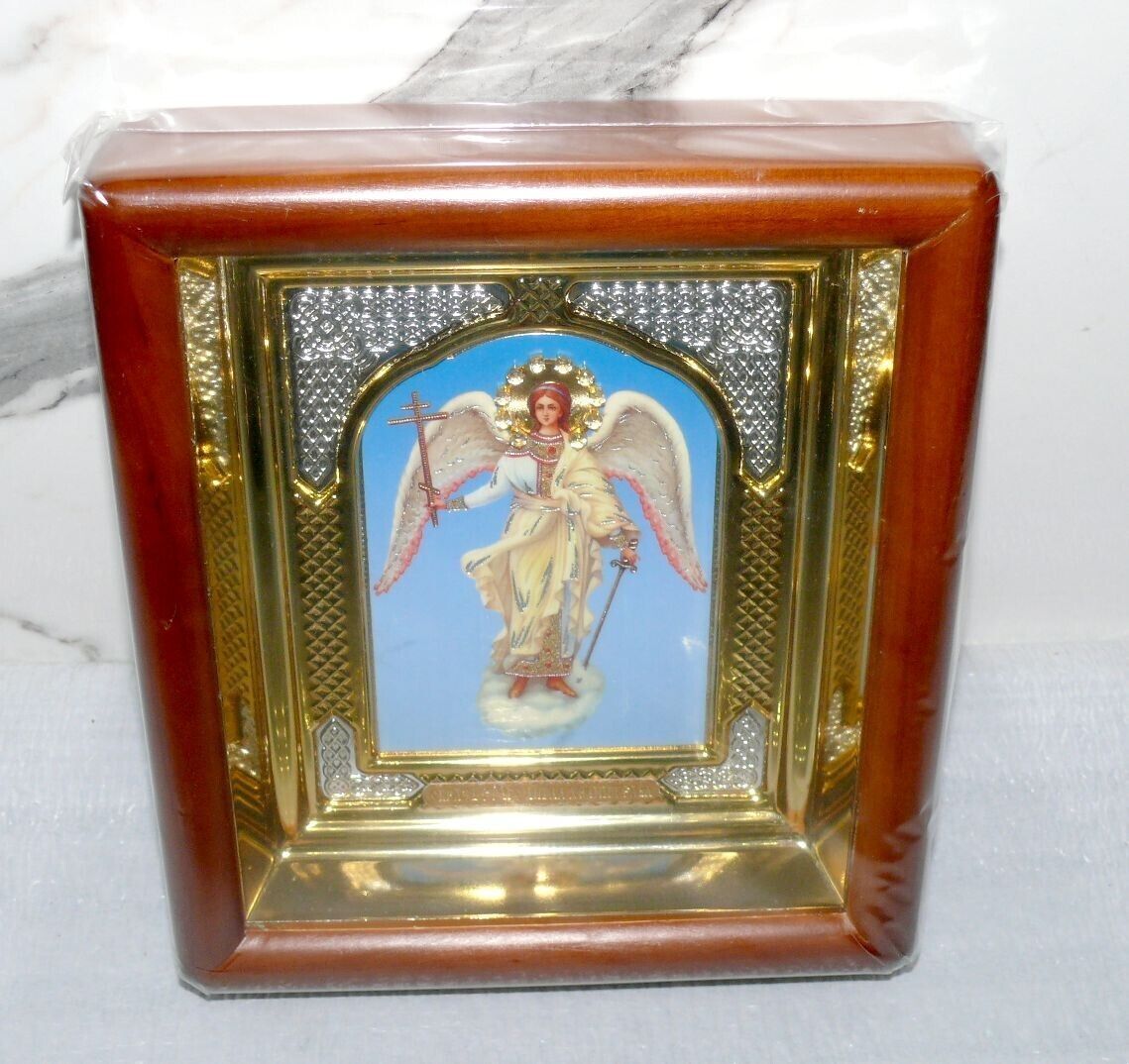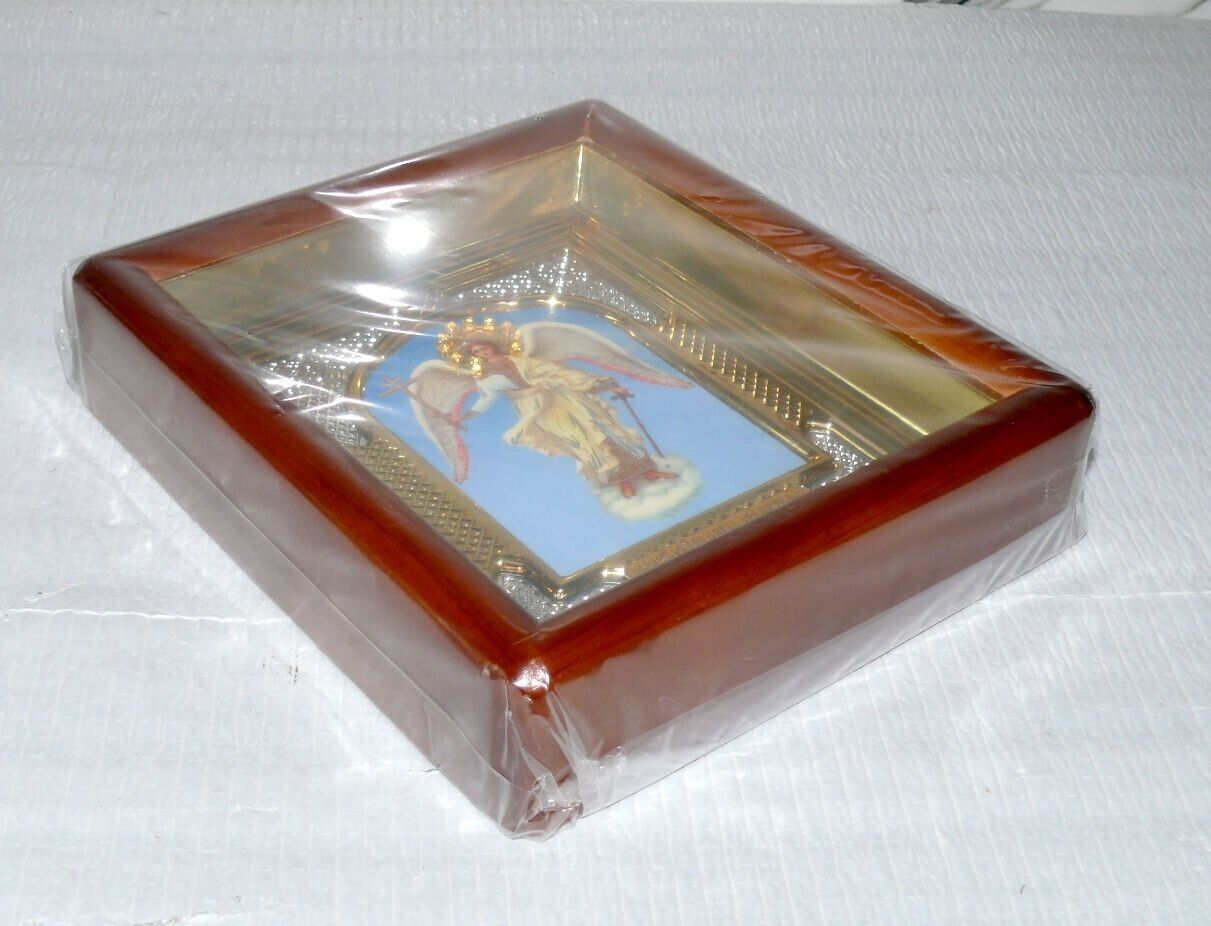 ????? Ikone Schutzengel ????? 17x19x4cm Holz Rahme Braun orthodox N14
