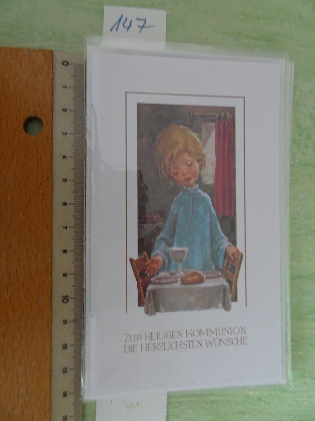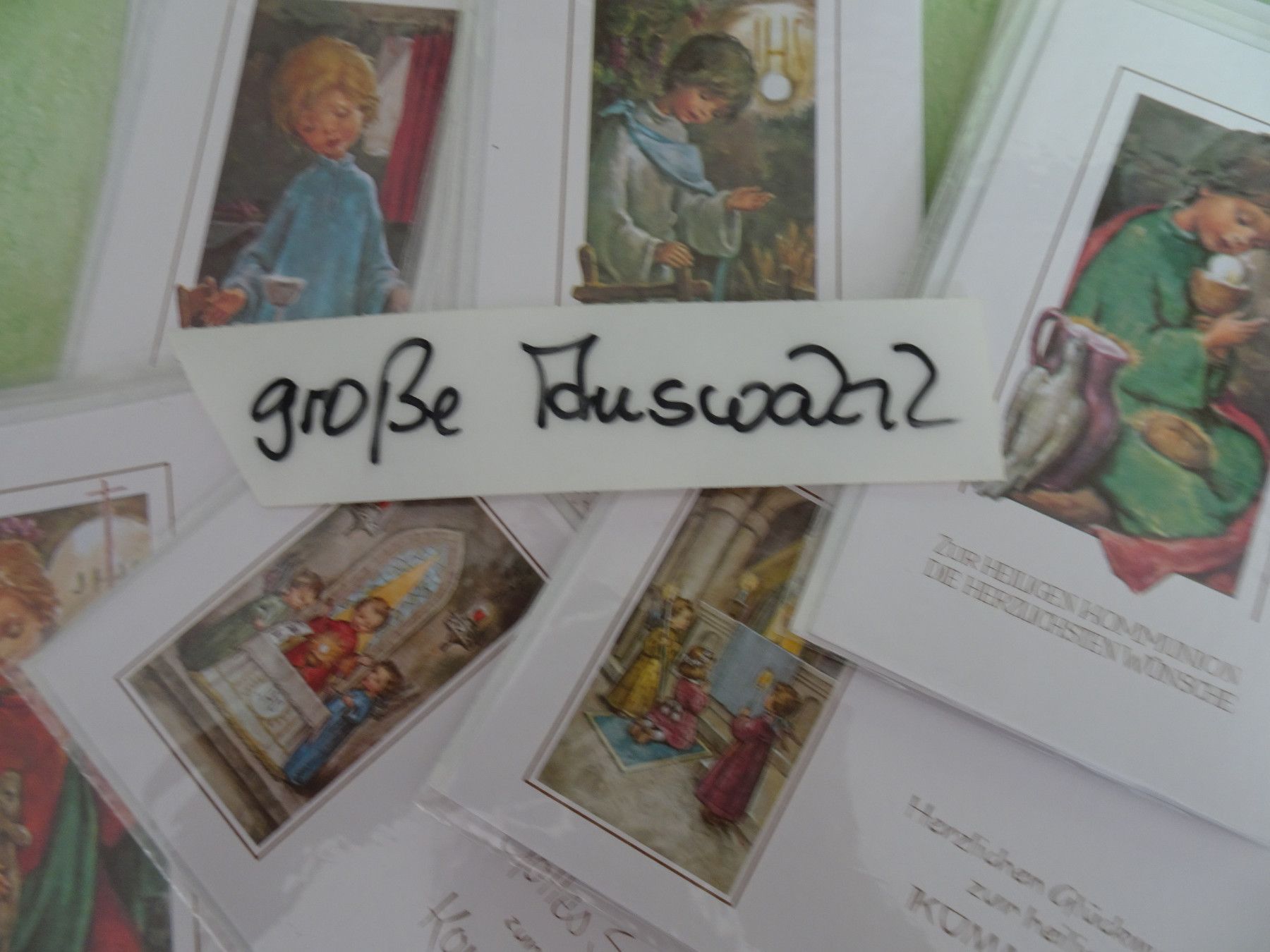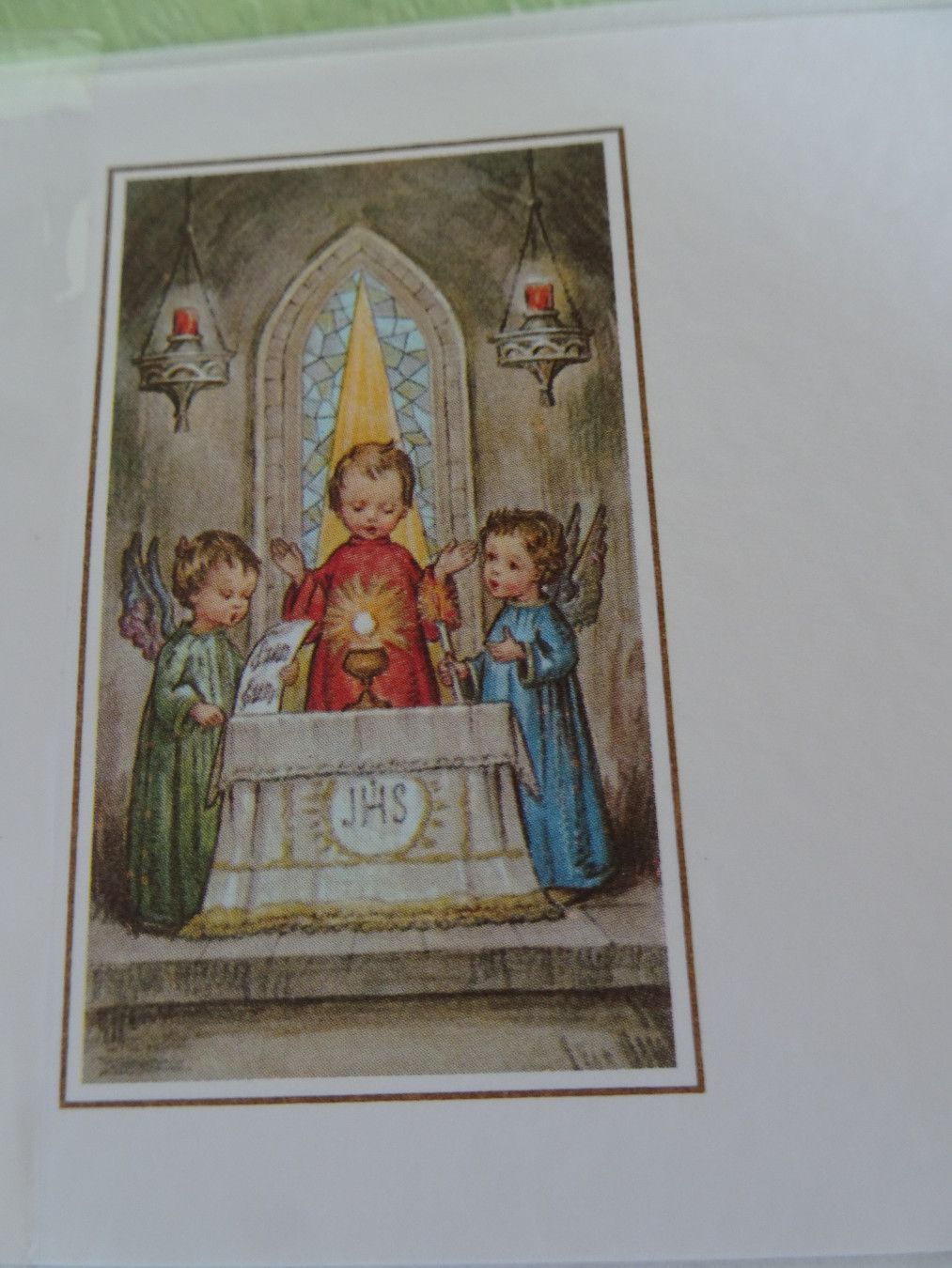ältere edle mini Grußkarten Zur heiligen Kommunion Heiligenbild Strukturkarten