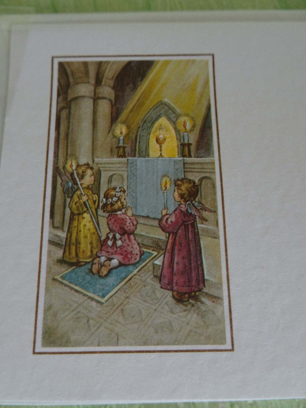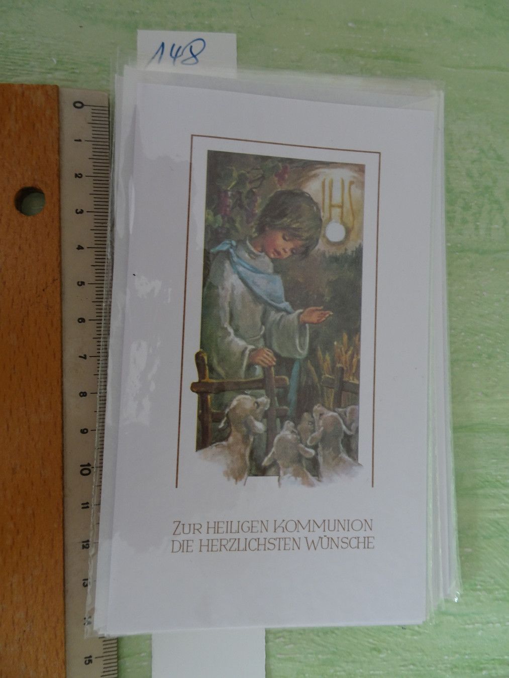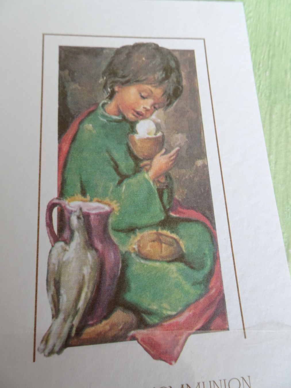 ältere edle mini Grußkarten Zur heiligen Kommunion Heiligenbild Strukturkarten