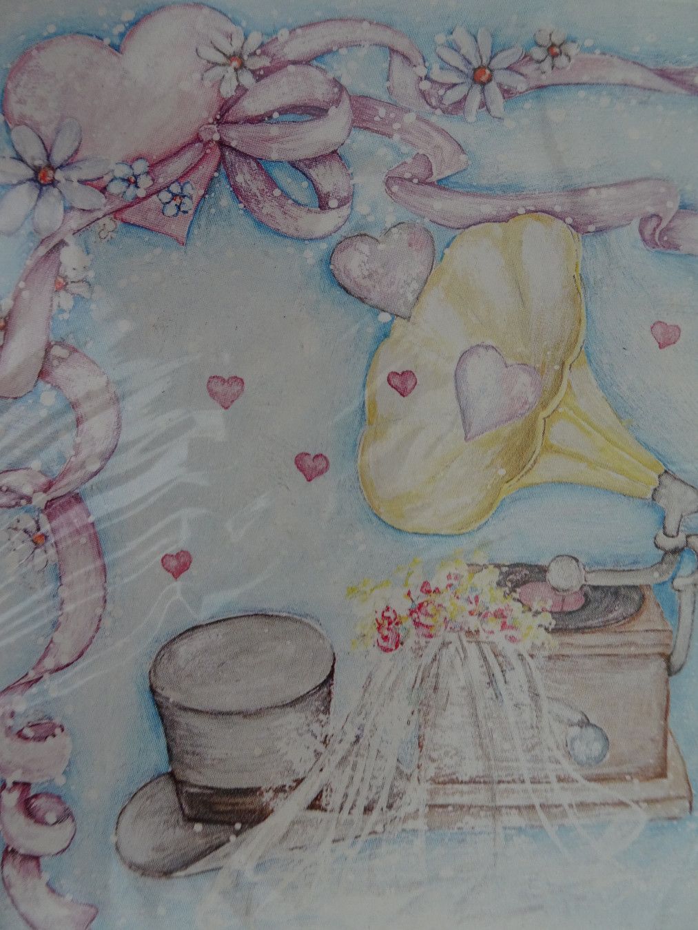 ältere Grußkarten Hochzeit Vermählung ... wie gemalt ... pastell - Taunus Card