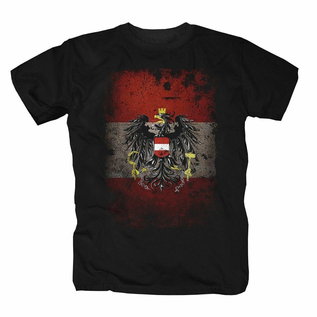 Österreich T-Shirt - Qualitativ hochwertige Shirts - 100 % Baumwolle - einteiliger Baumwolle Lycra Rippstrick-Kragen - Doppelnähte an allen Säumen und am Halsausschnitt