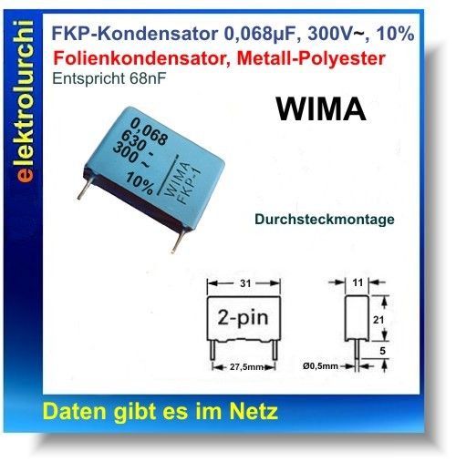 0,068uF, 300 /630V- , FKP Folien Kondensator / Metall-Pol. RM27,5mm, Wima, 1St.