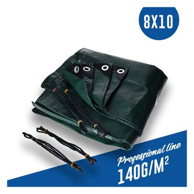 • Abdeckplane, Gewebeplane 140g/m² grün inkl. Seil Befestigungsseil, mit Ecken- und