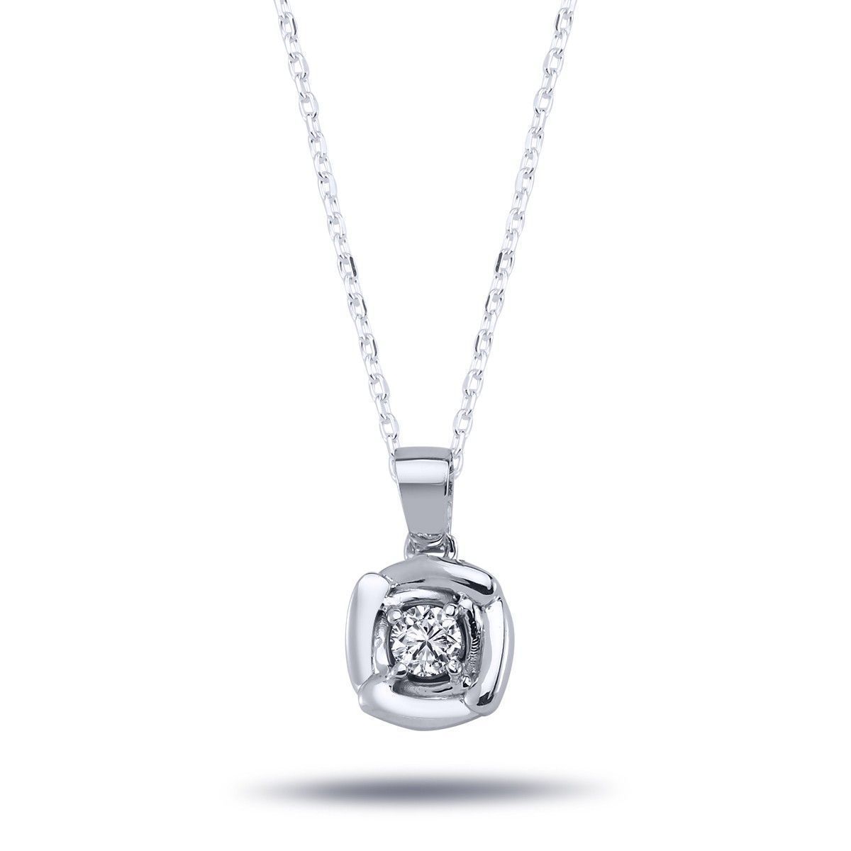 0,13Carat Brillant-Schliff Diamant Viereck Design Anhänger Halskette 14 Karat Gold