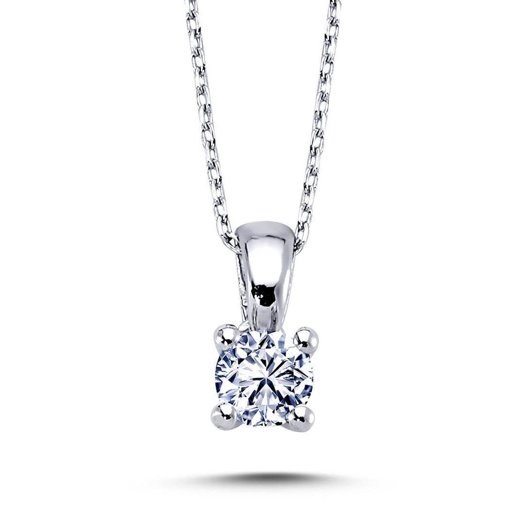 0,32 Carat Diamant Solitär Anhänger mit Kette Halskette in 14 Karat Weißgold