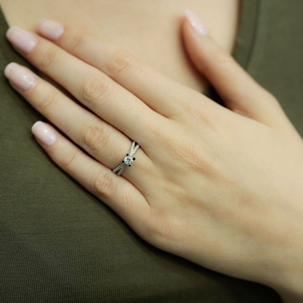 0,41 Carat Diamant Solitär Ring Brillant-Schliff Antragsring in 14 Karat Weißgold