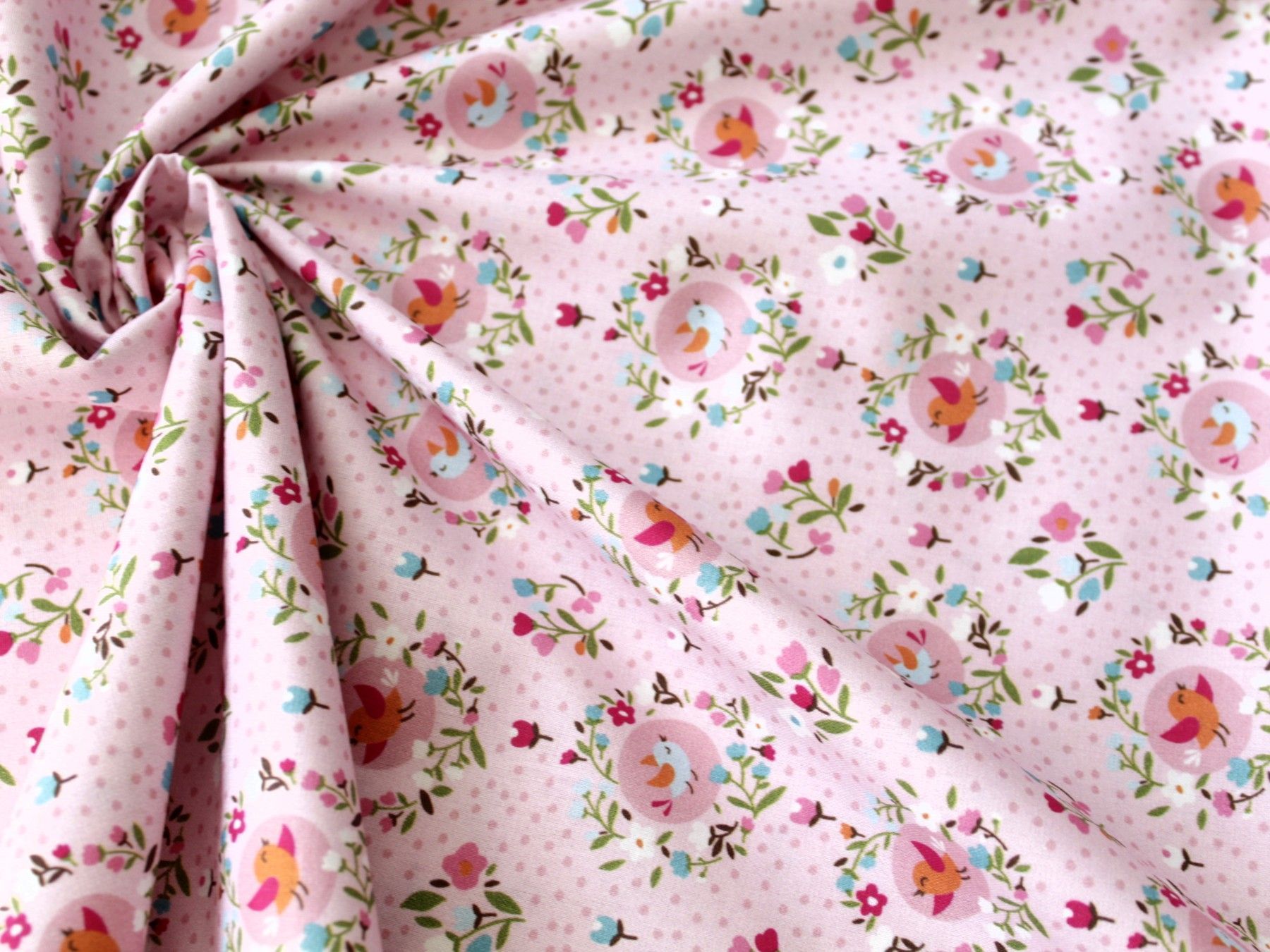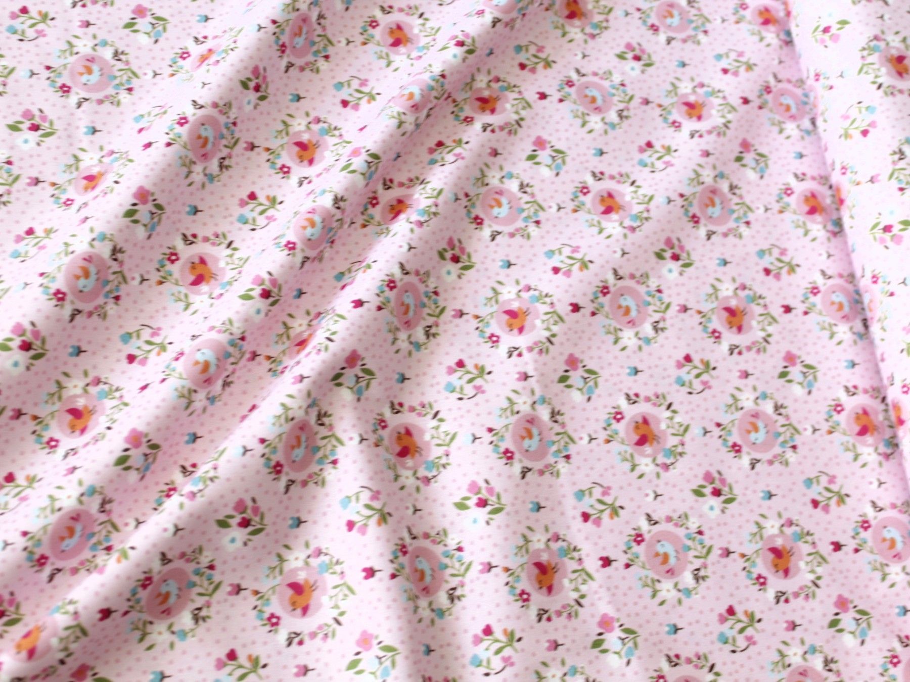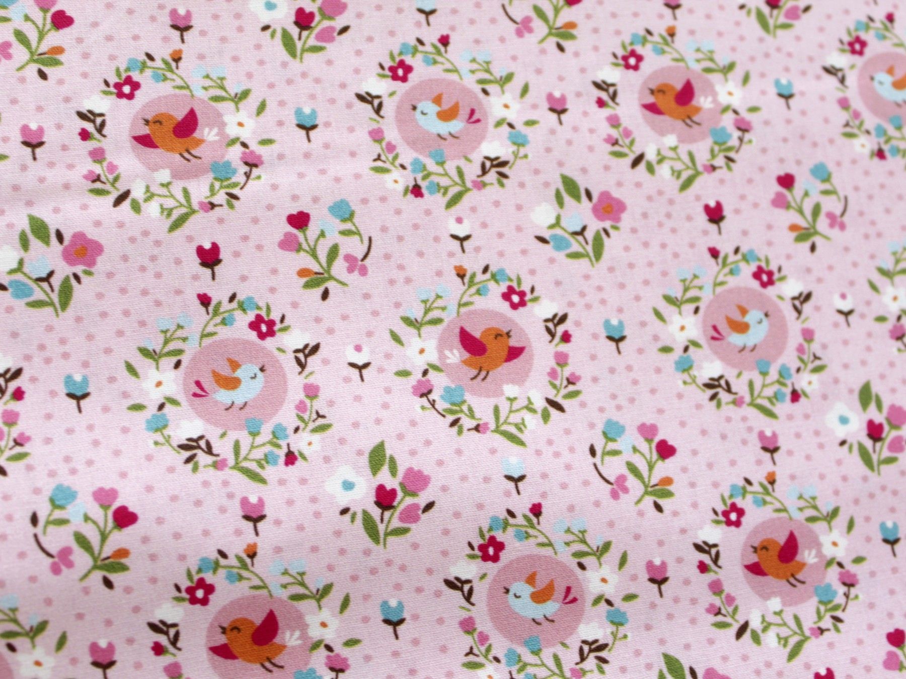 0,5 m Popeline " Vögel rosa", 145 cm breit , Baumwolle, Webware