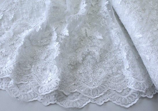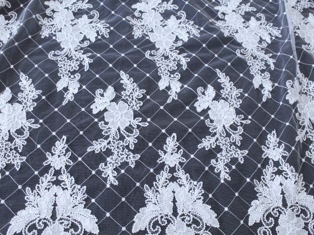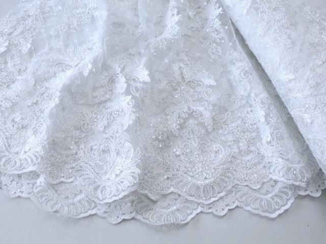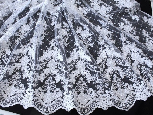 0,5 m Spitzenstoff, 130 cm breit, Tüllspitze , Pailletten , weiß