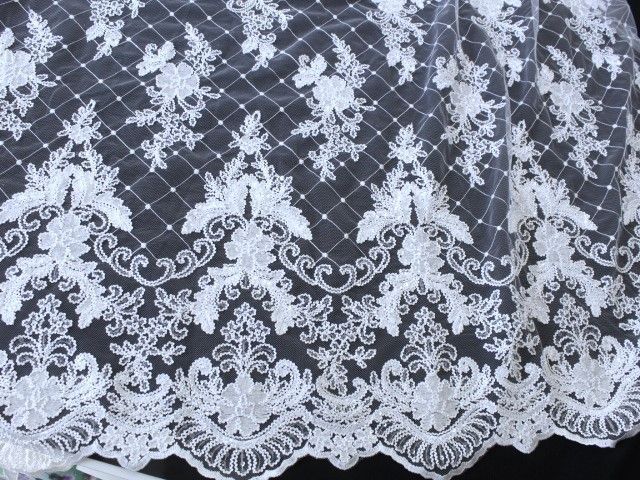 0,5 m Spitzenstoff, 130 cm breit, Tüllspitze ,Pailletten ,weiß