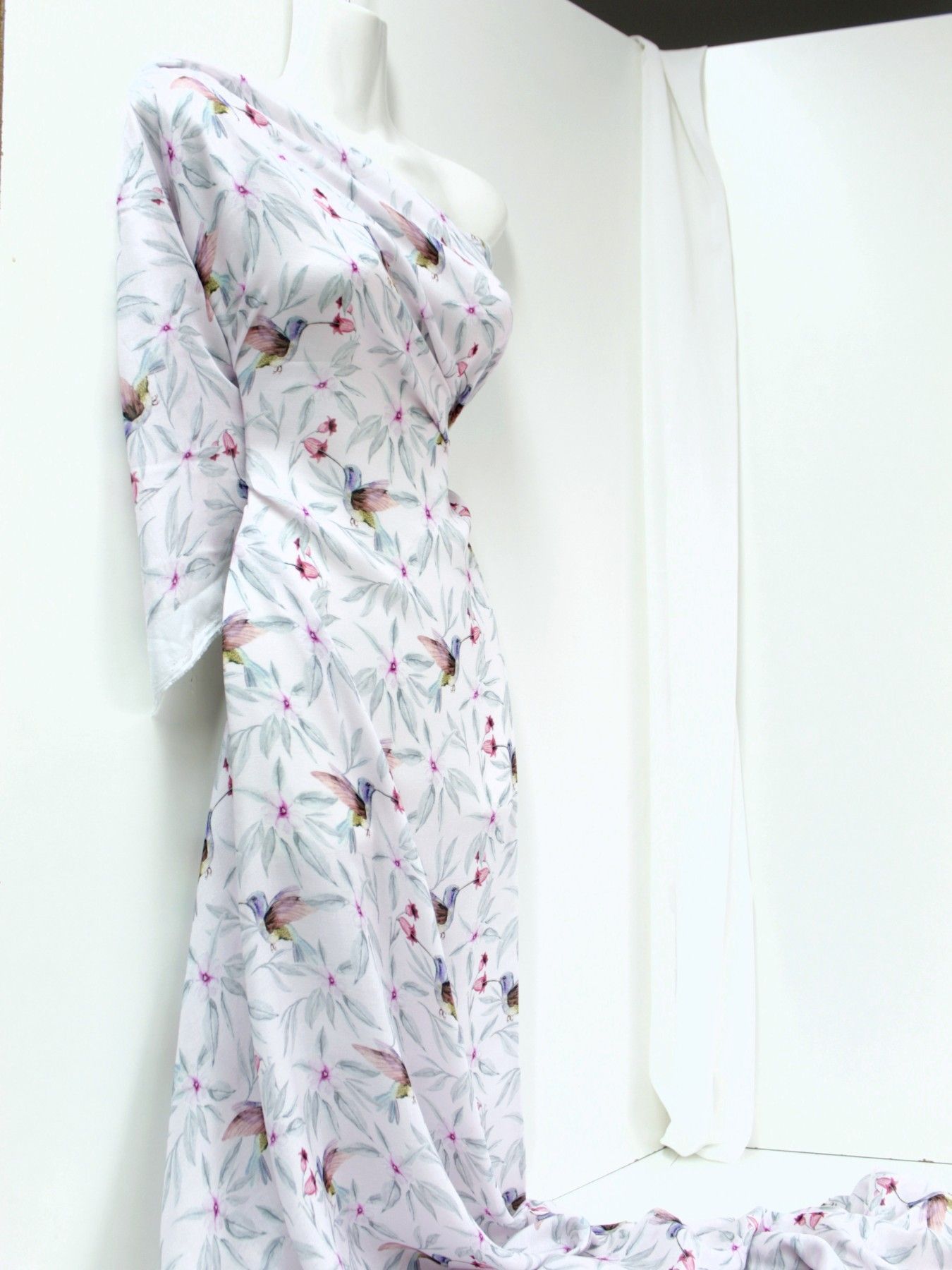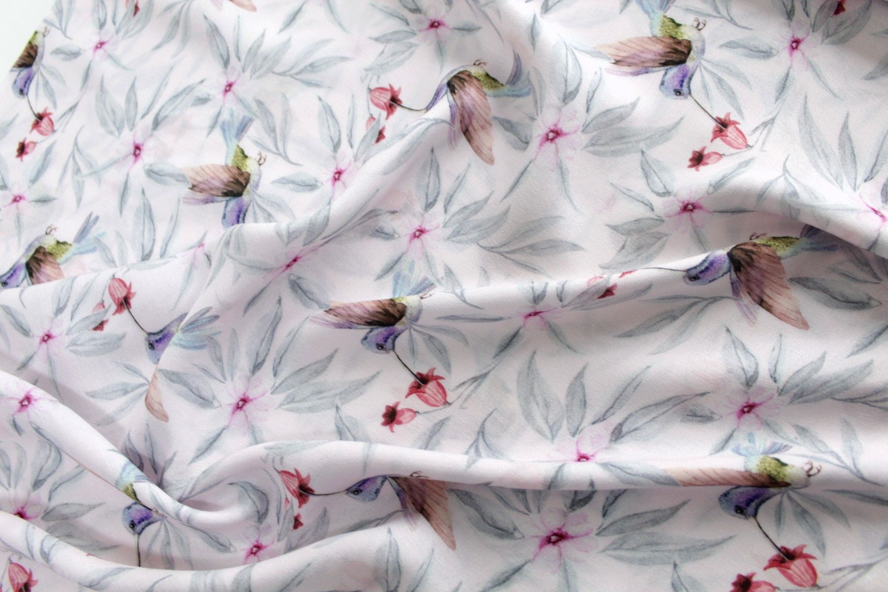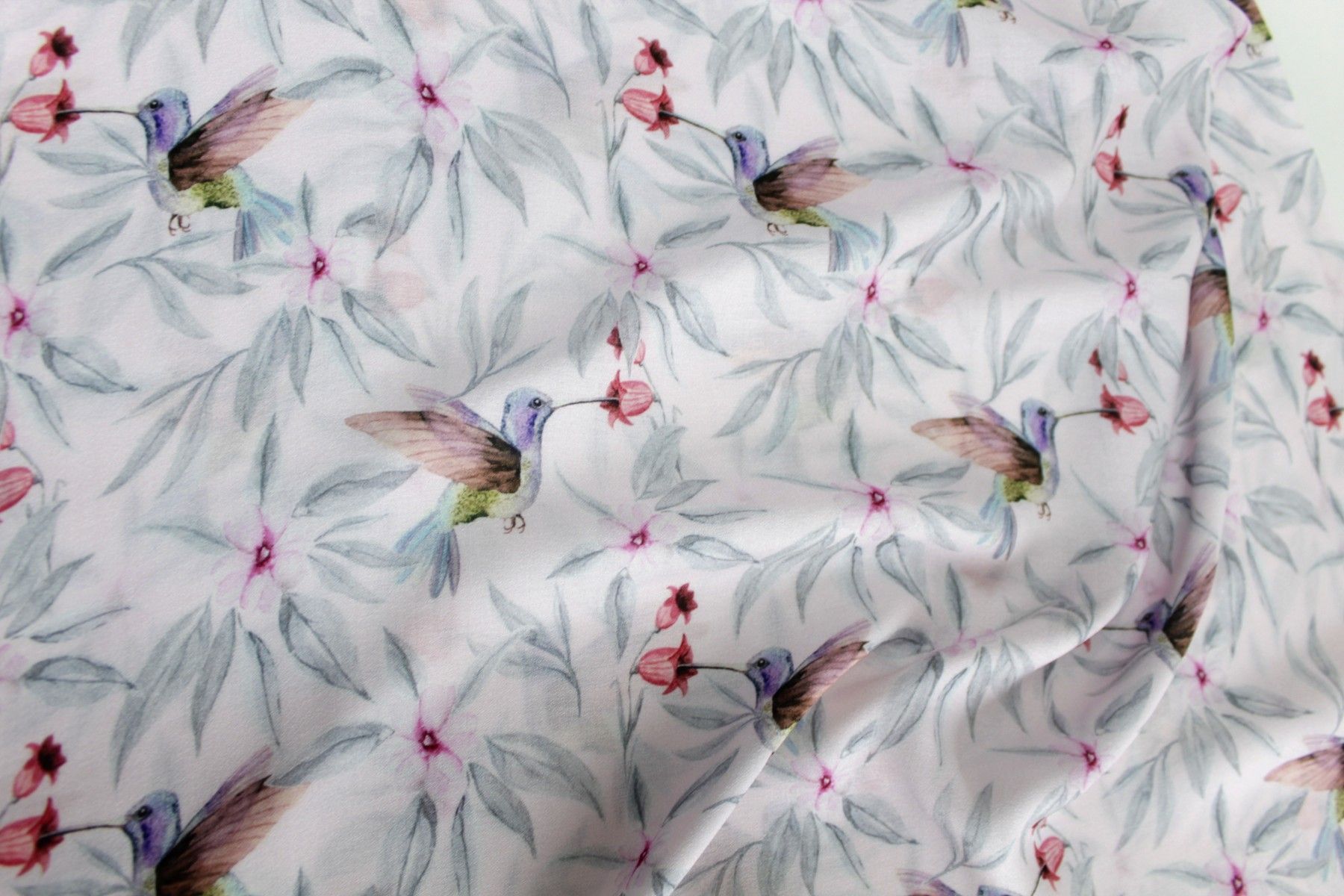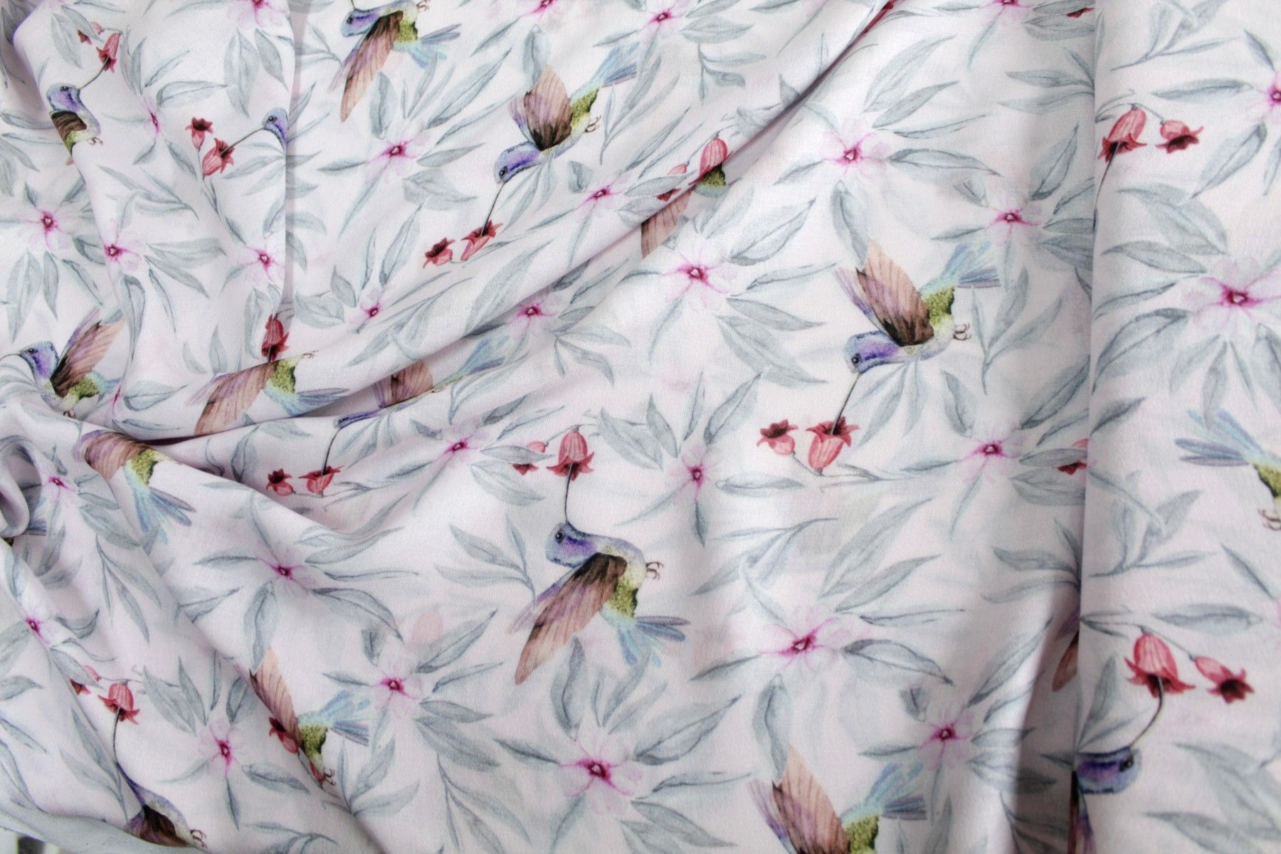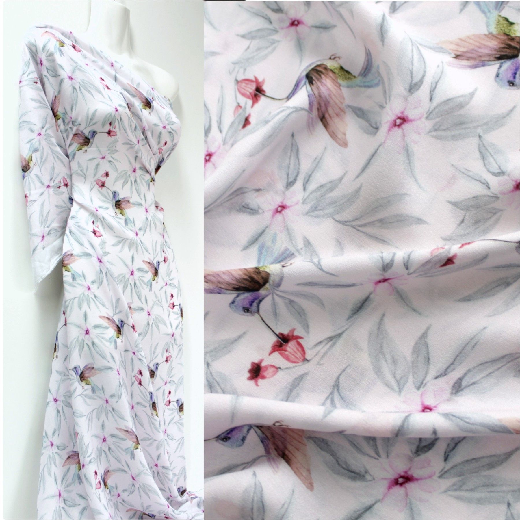 0,5 m Viskose Crepé " Kolibris rosé", 145 cm breit , Vögel
