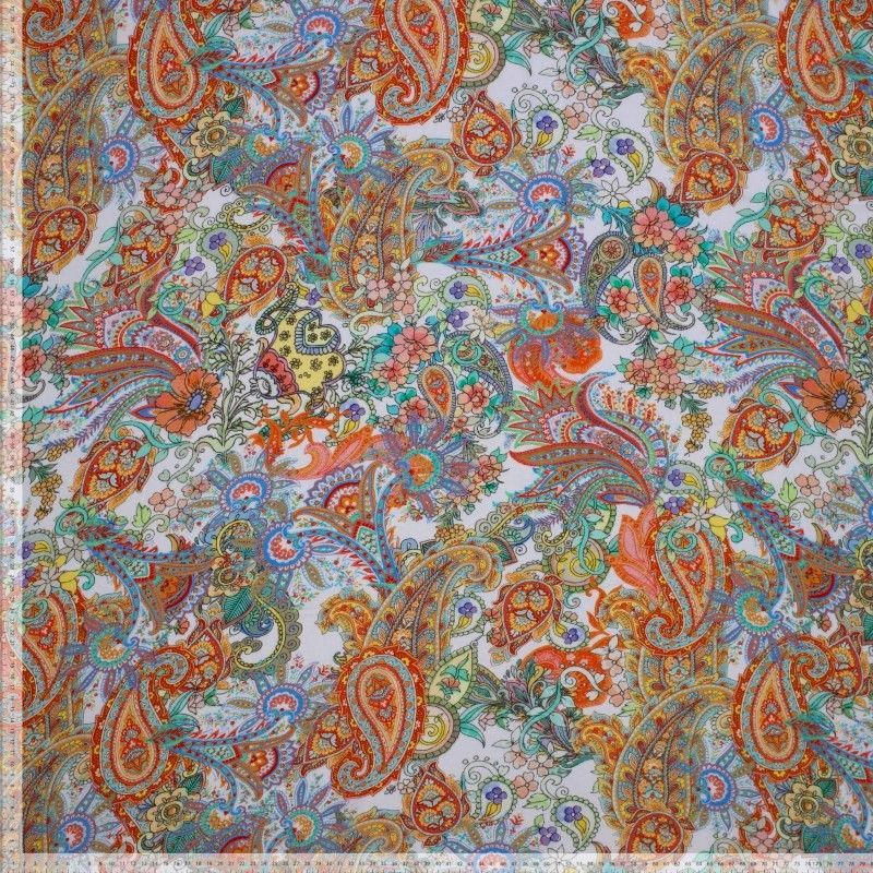 0,5m "Paisley orange", 14,98 €/ m, 140 cm breit , Viskose Webware