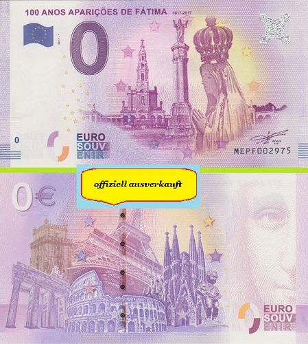0 Euro Schein 100 Anos Aparicoes de Fatima MEPF 2017-1 offiziell ausverkauft Nr 7125