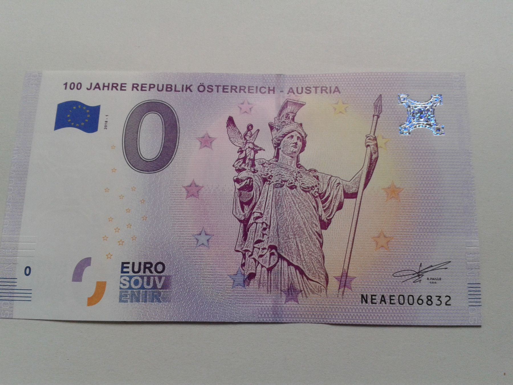 0 euro Schein 100 Jahre Republik Österreich Souvenirschein 2018-1
