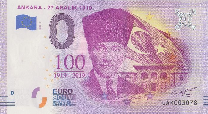 0 Euro Schein Ankara - 27 Aralik 1919 TUAM 2019-1 selten Nr 6318