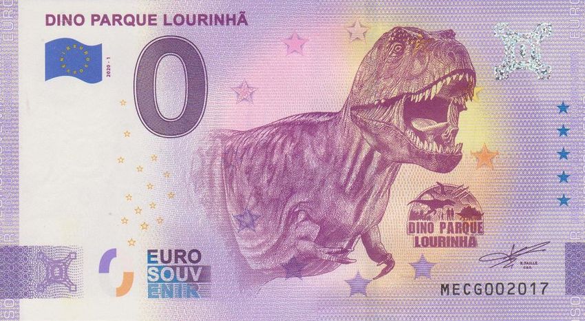 0 Euro Souvenirschein Portugal Dino Parque Lourinhã Land: Portugal Jahr: 2020 ( 2020-1 ) Material: Original Euro Banknoten Papier - Oberthur Technologies (Chantepie, Frankreich) Maße: 135 x 74 mm Gewicht: 0,90 g Qualität: Druckfrisch Auflage: 4.000 Unikat dank individueller Seriennummer! (Num