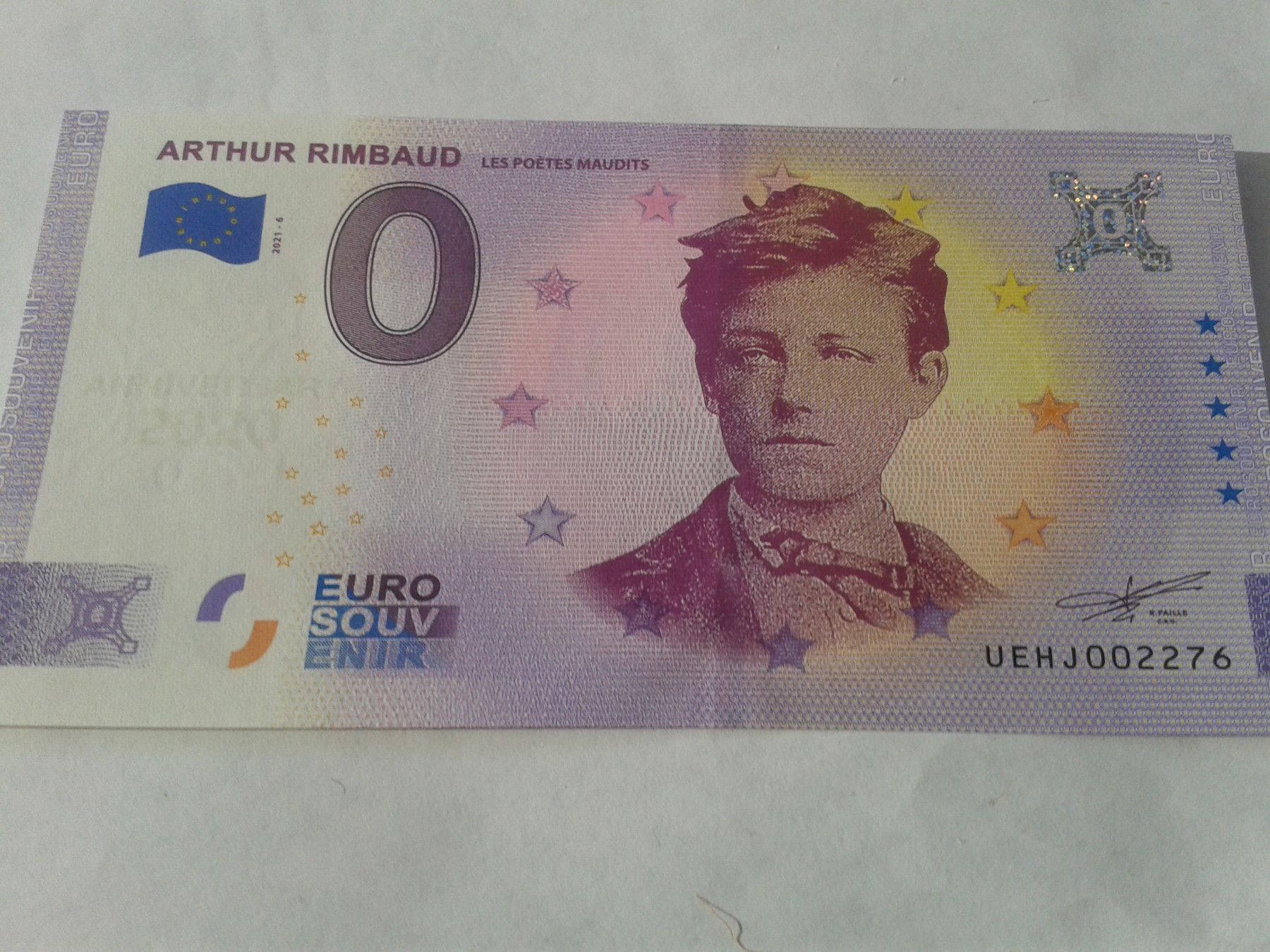 0 euro Schein Eurosouvenirschein Billet Arthur Rimbaud 2021-6