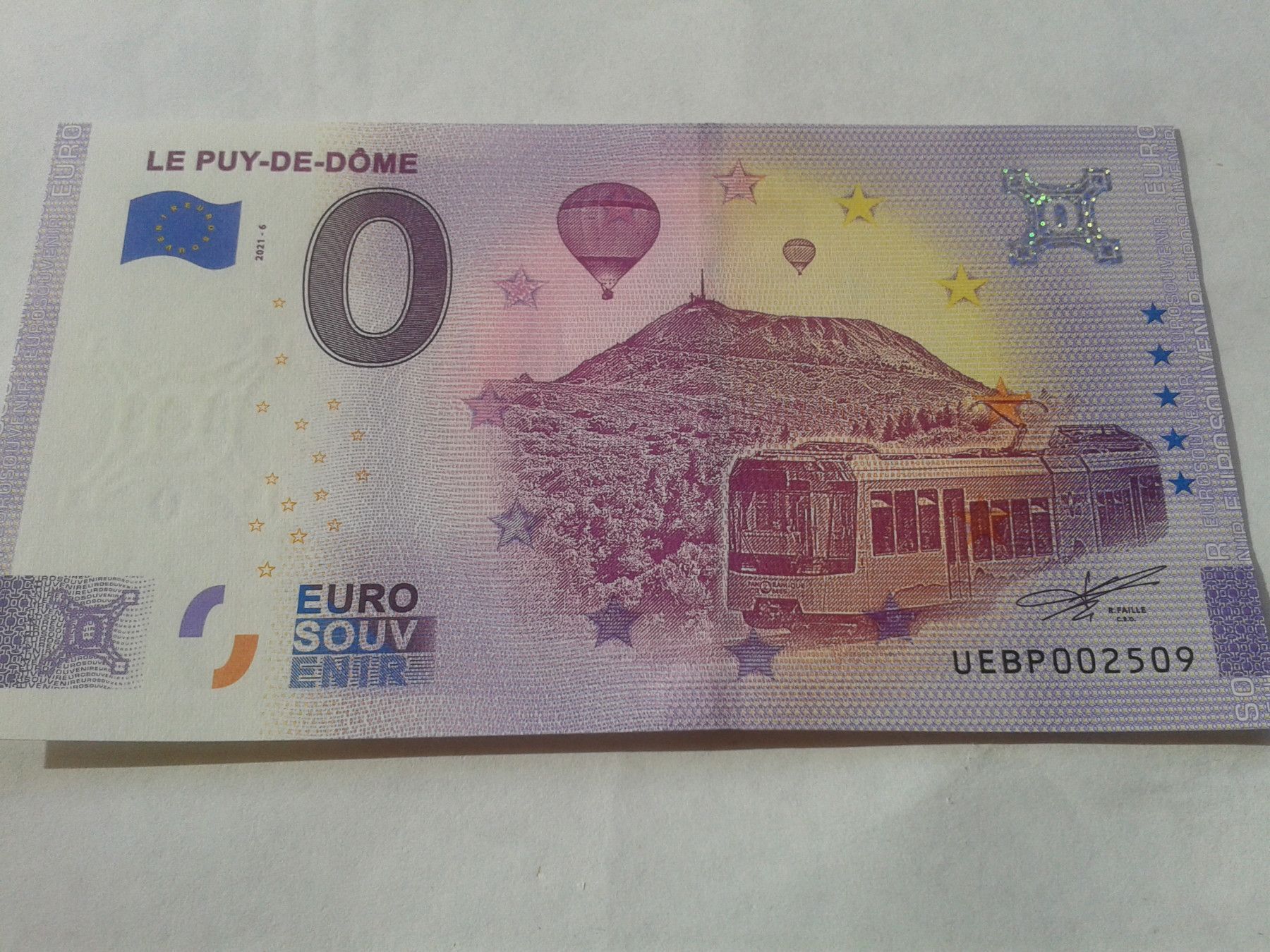 0 euro Schein Eurosouvenirschein Billet Le Puy de dome 2021-6