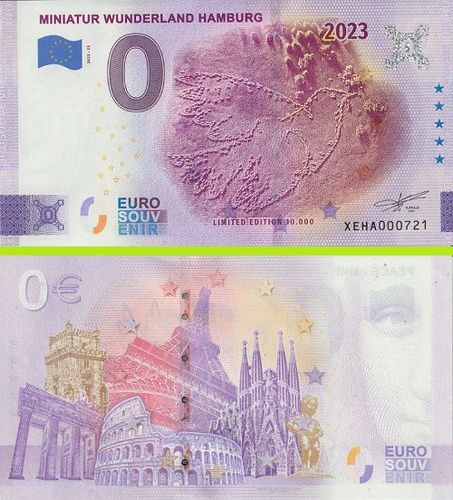 0 Euro Schein Miniatur Wunderland Hamburg 2023 XEHA 2023-25 selten niedrige Nr. 723