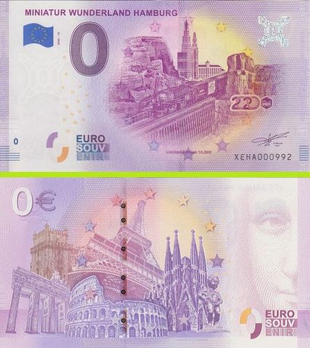 0 Euro Souvenirschein Deutschland Miniatur Wunderland Hamburg Land: Deutschland Jahr: 2020 ( 2020-14 ) Material: Original Euro Banknoten Papier - Oberthur Technologies (Chantepie, Frankreich) Maße: 135 x 74 mm Gewicht: 0,90 g Qualität: Druckfrisch Auflage: 10.000 Unikat dank individueller Seriennumm