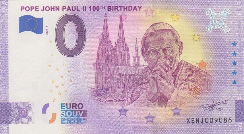 0 Euro Schein Pope John Paul II 100th Birthday XENJ 2020-1 Anniversary selten Nr 9087