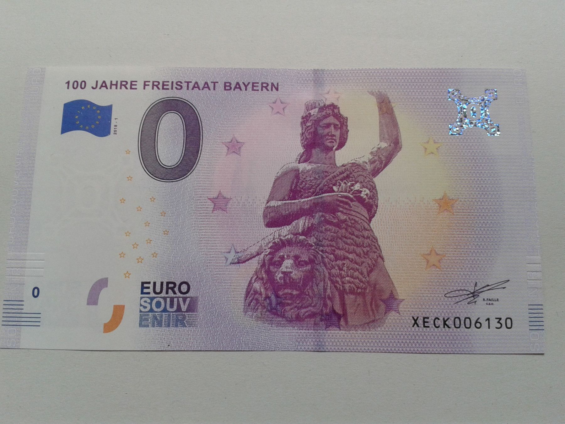 0 euro Schein Souvenirschein 100 Jahtre Freistaat Bayern BavariaSouvenirschein 2018-1