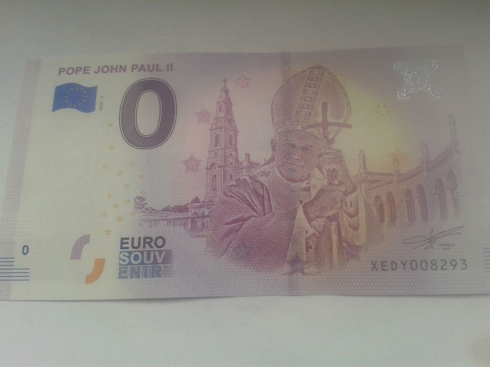 0 euro Schein 0 euro Souvenirschein Papst Johannes Paul II. bankfrisch, Versand 2,8 euro