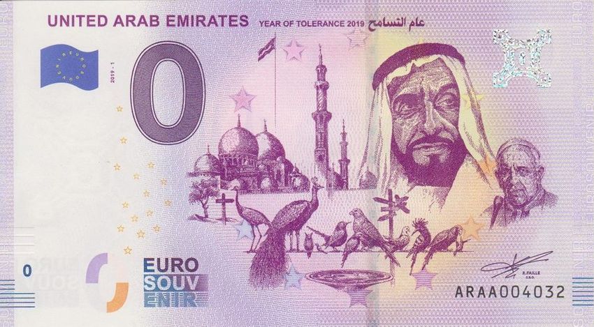 0 Euro Schein United Arab Emirates ARAA 2019-1 selten Nr 4034