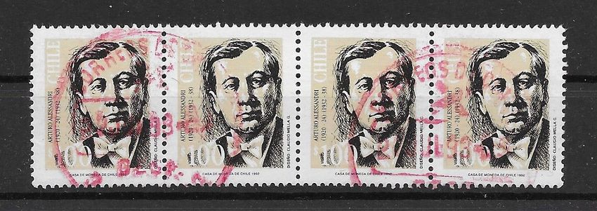 008) Chile 1990 Präsident Mi. Nr. 1390 4er Streifen gestempelt