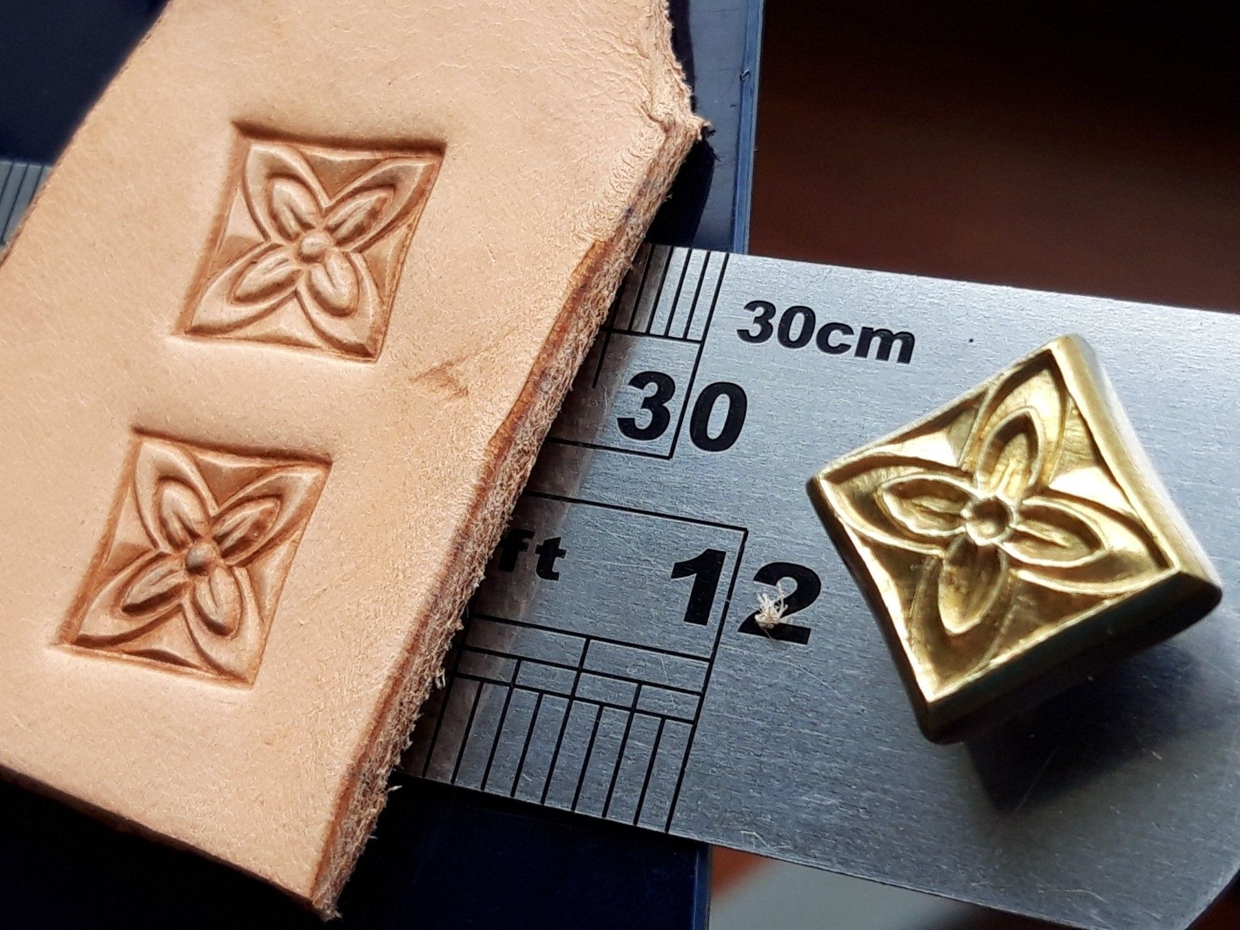 Lederstempel mit Blumenmotiv im Quadrat. Saubere Prägung, kompakte Größe – ideal für kreative Lederarbeiten.