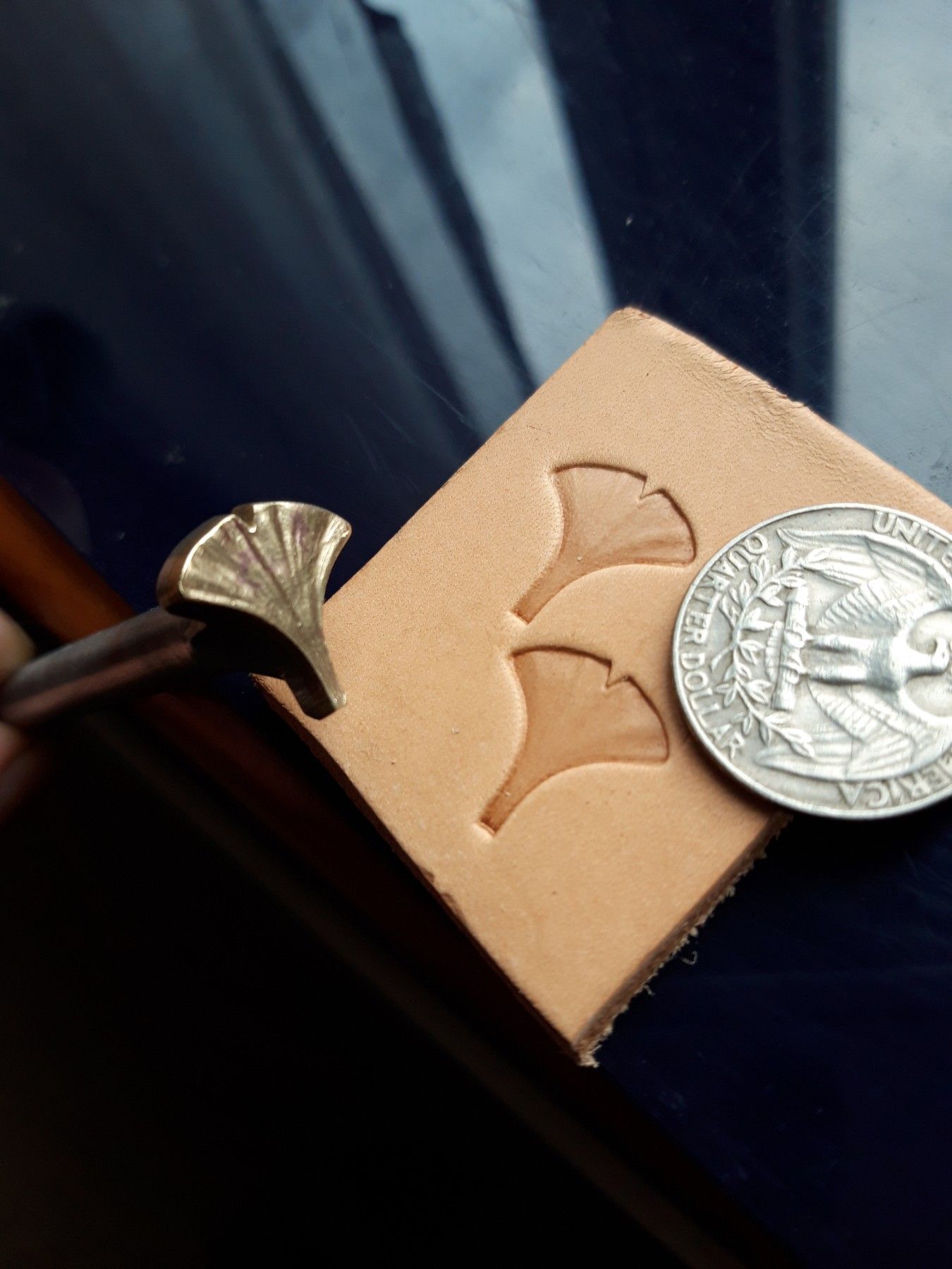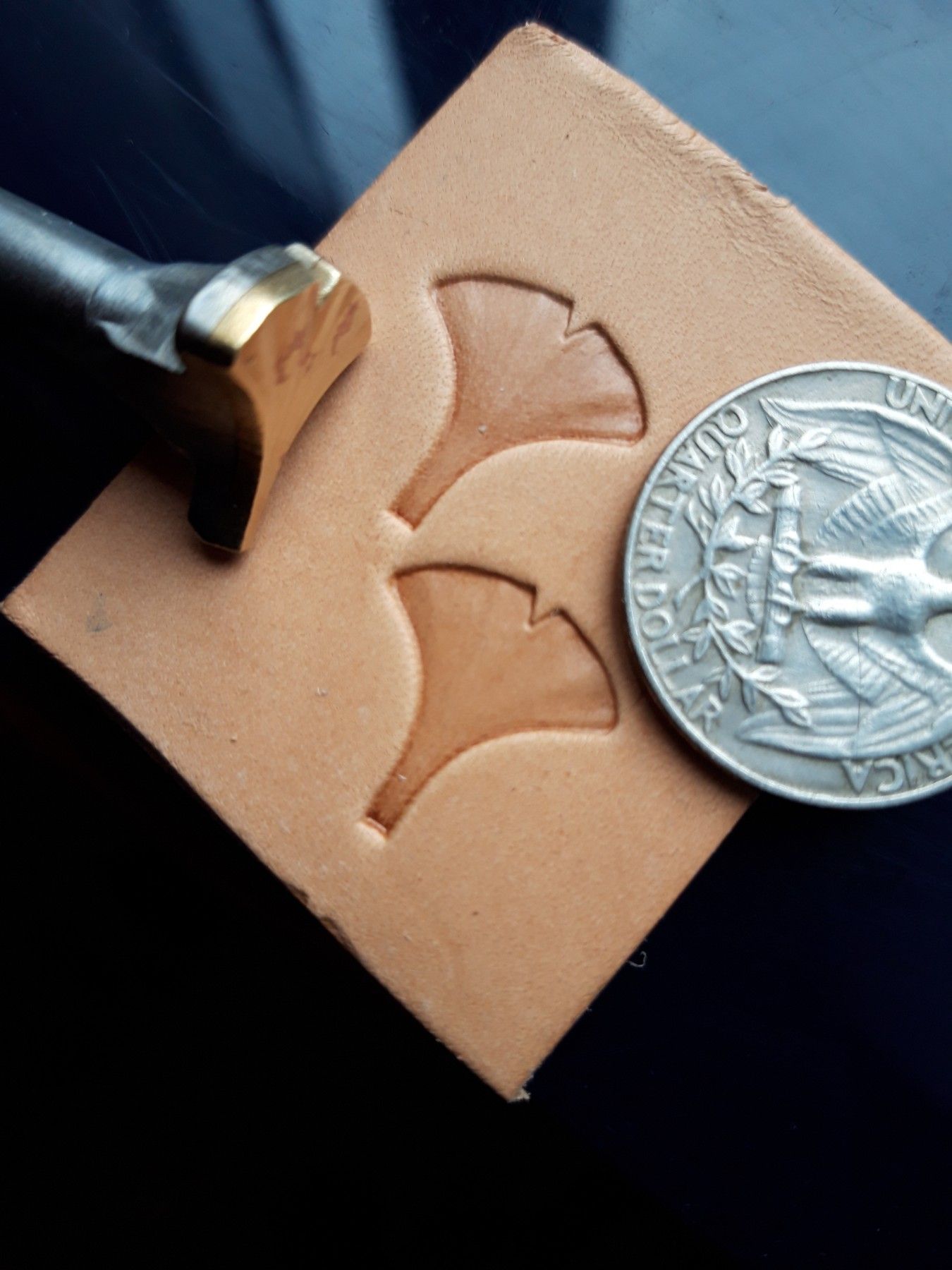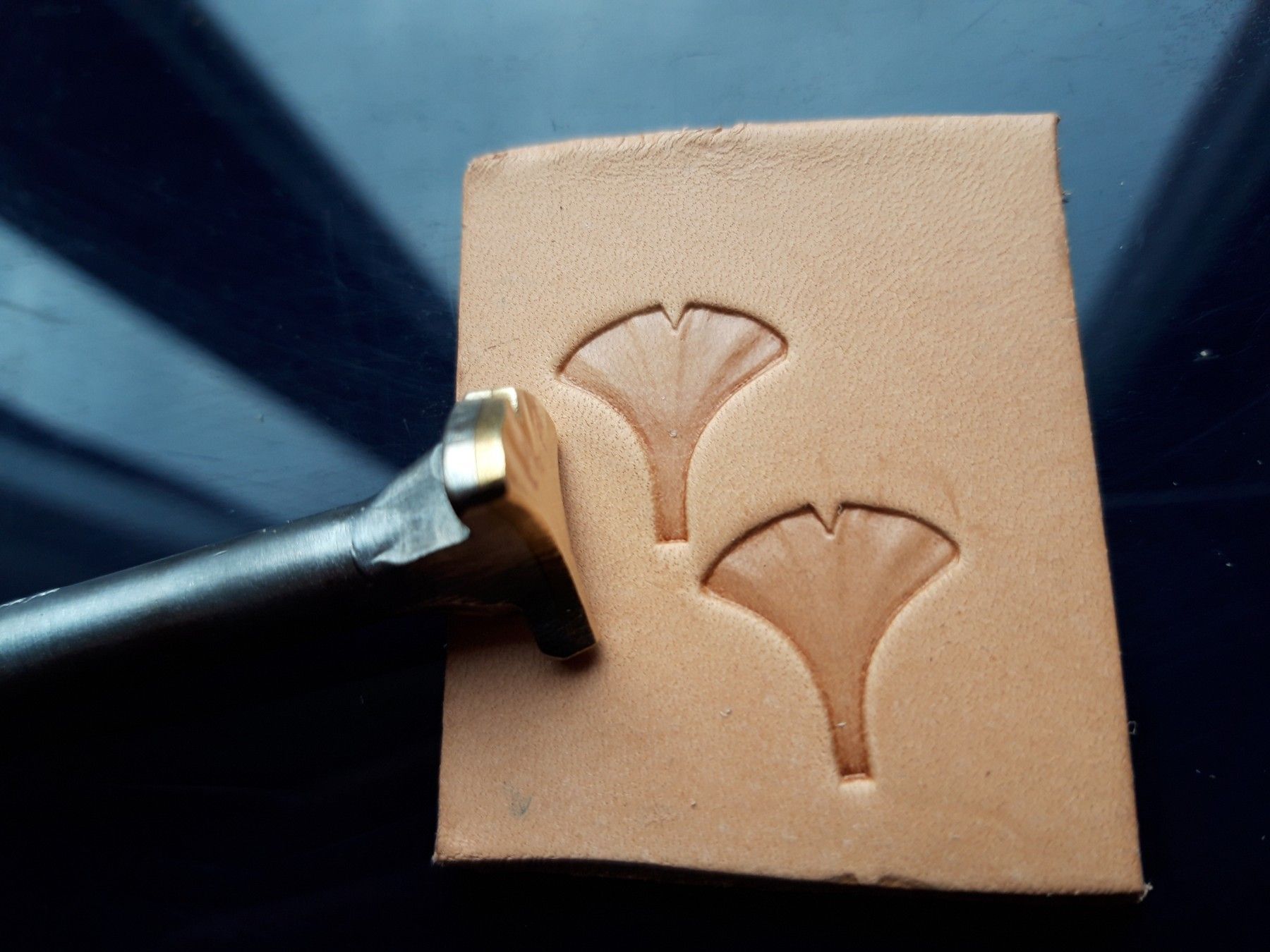 015-04 Ginkgo Blatt aus Messing Handgefertigte Lederstempel