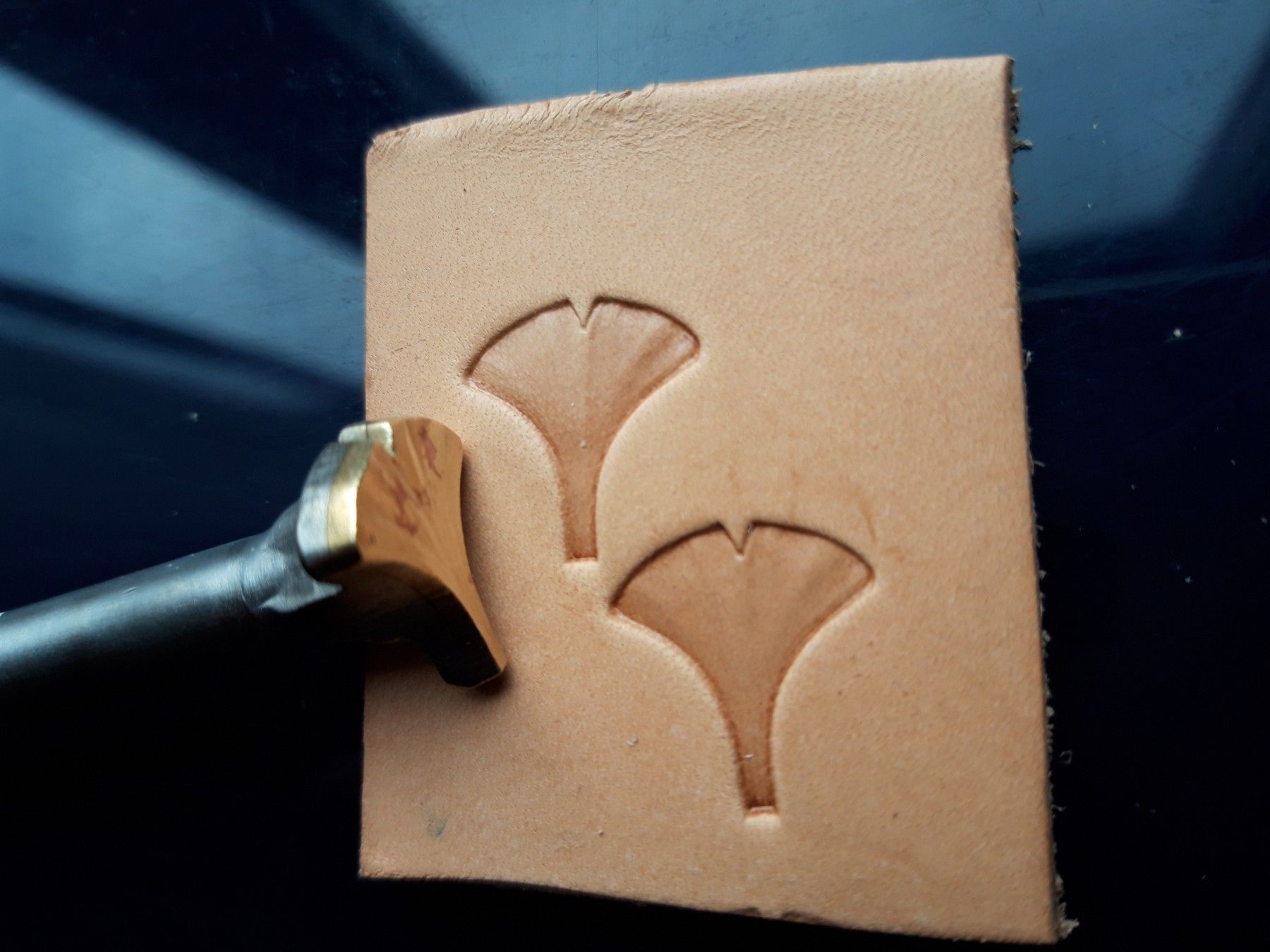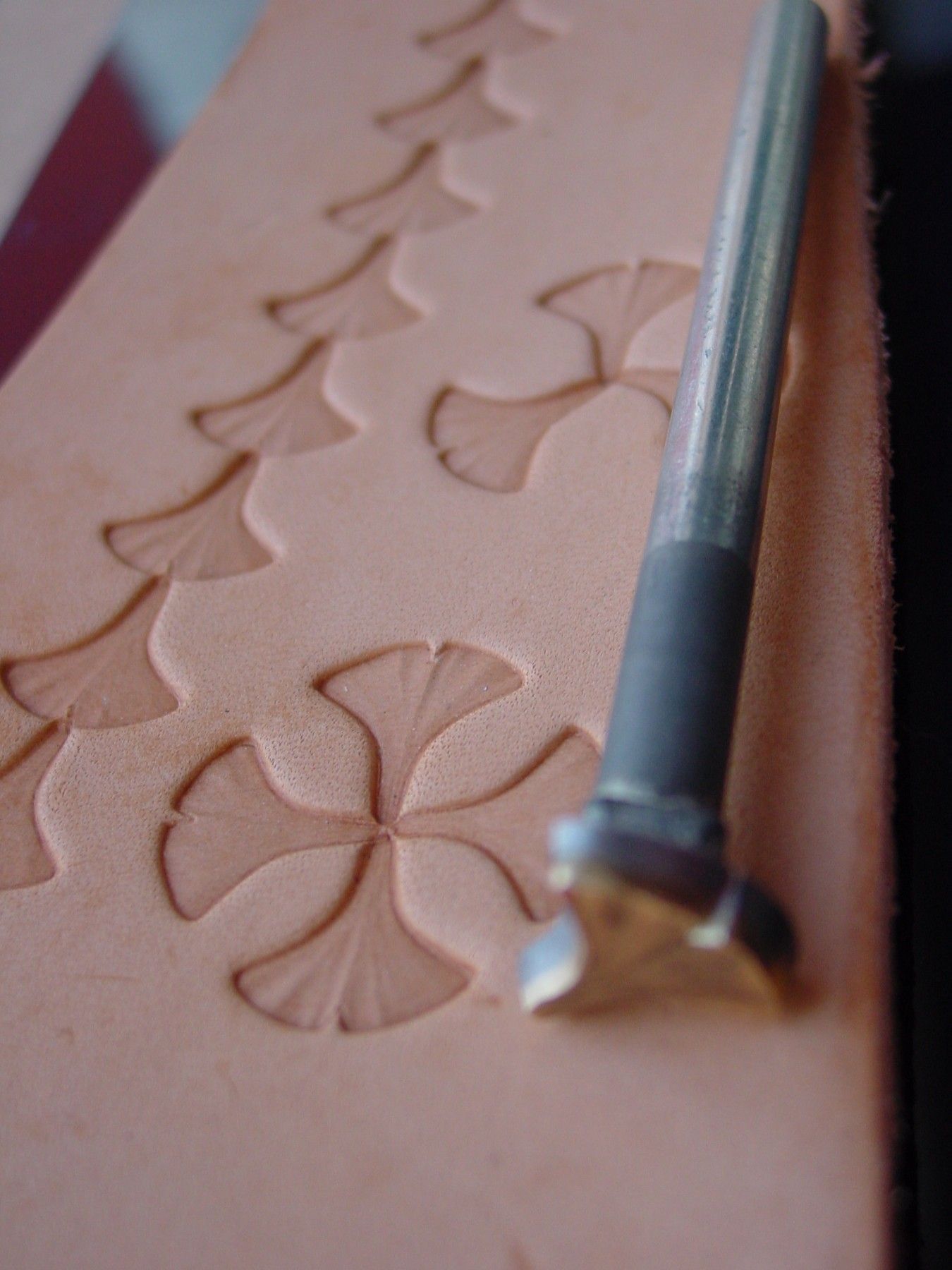 015-04 Ginkgo Blatt I. Handgemachte Lederstempel Punziereisen