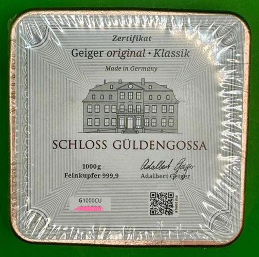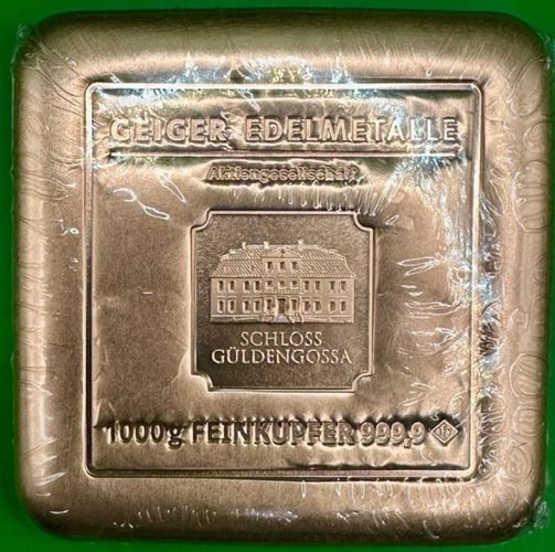 1,0 Kg Kupfer Barren .999 Feinkupfer 1000 g Riegel nummeriert Geiger Güldengossa