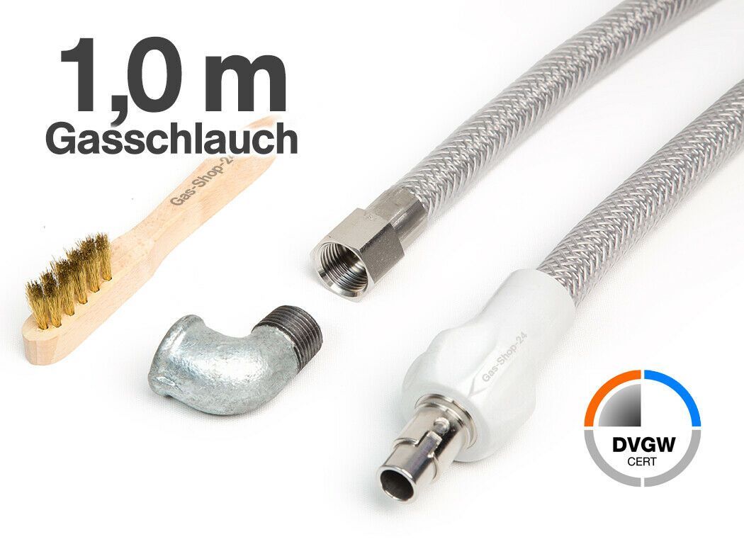 1,0 m Edelstahlschlauch Edelstahl Gasschlauch + Winkel f. Gasanschluss Allgas