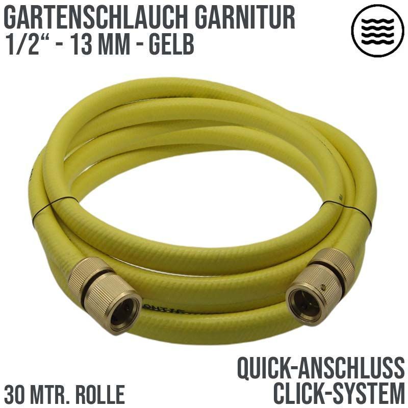 1/2" 13 mm Garten Wasser Schlauch Garnitur gelb Quick-Anschluss (Click-System) - 30 m