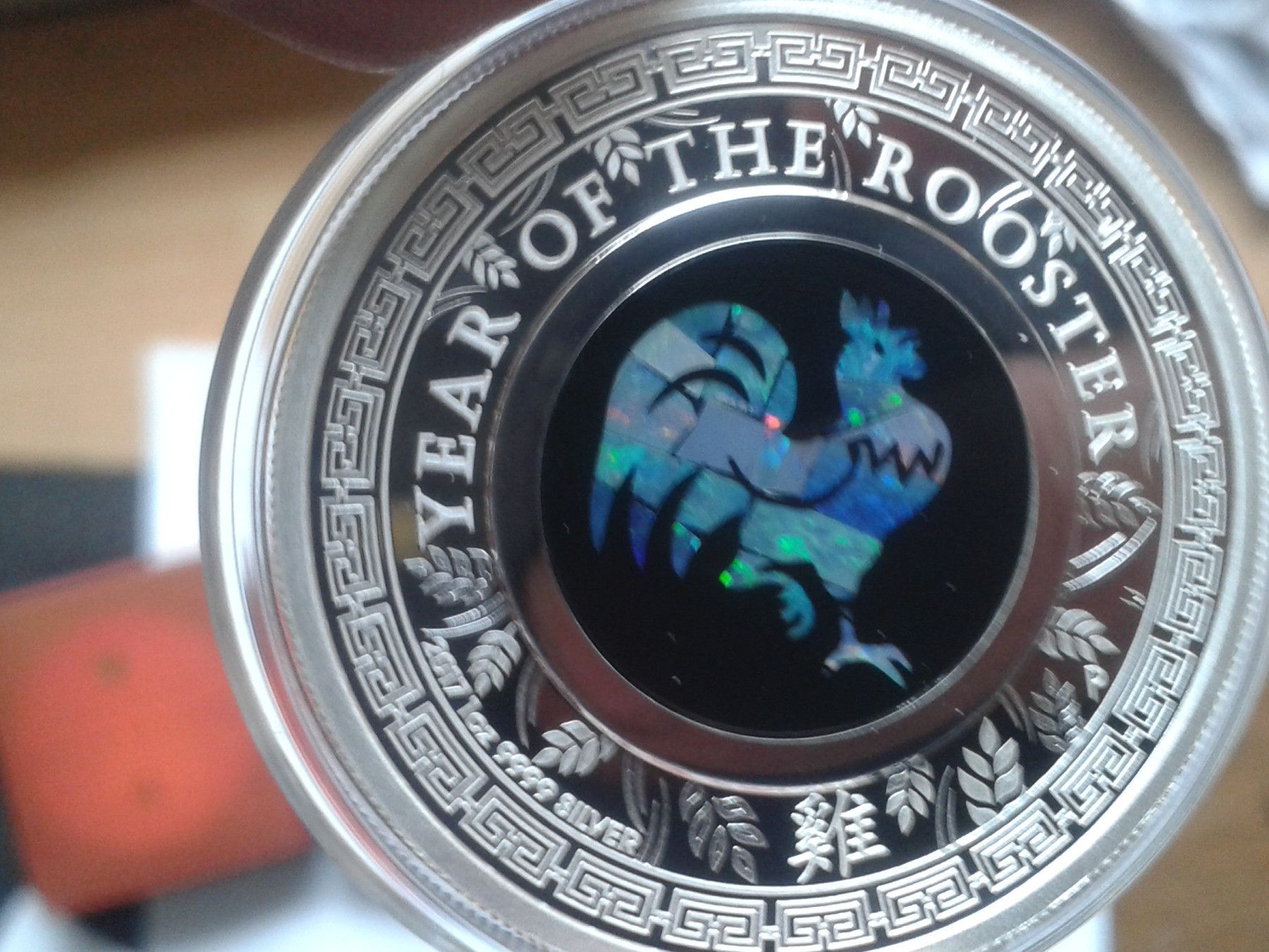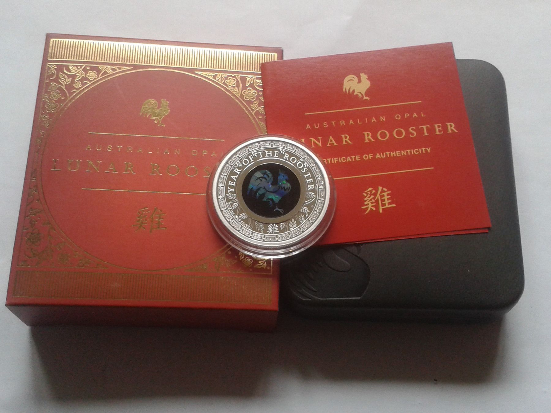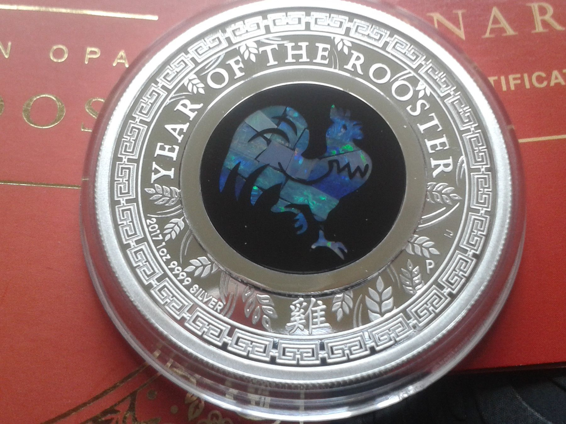 1$ 2017 PP Australien Lunar Hahn Opal 31,1g Silber mit Beleuchtung 1 Dollar 2017