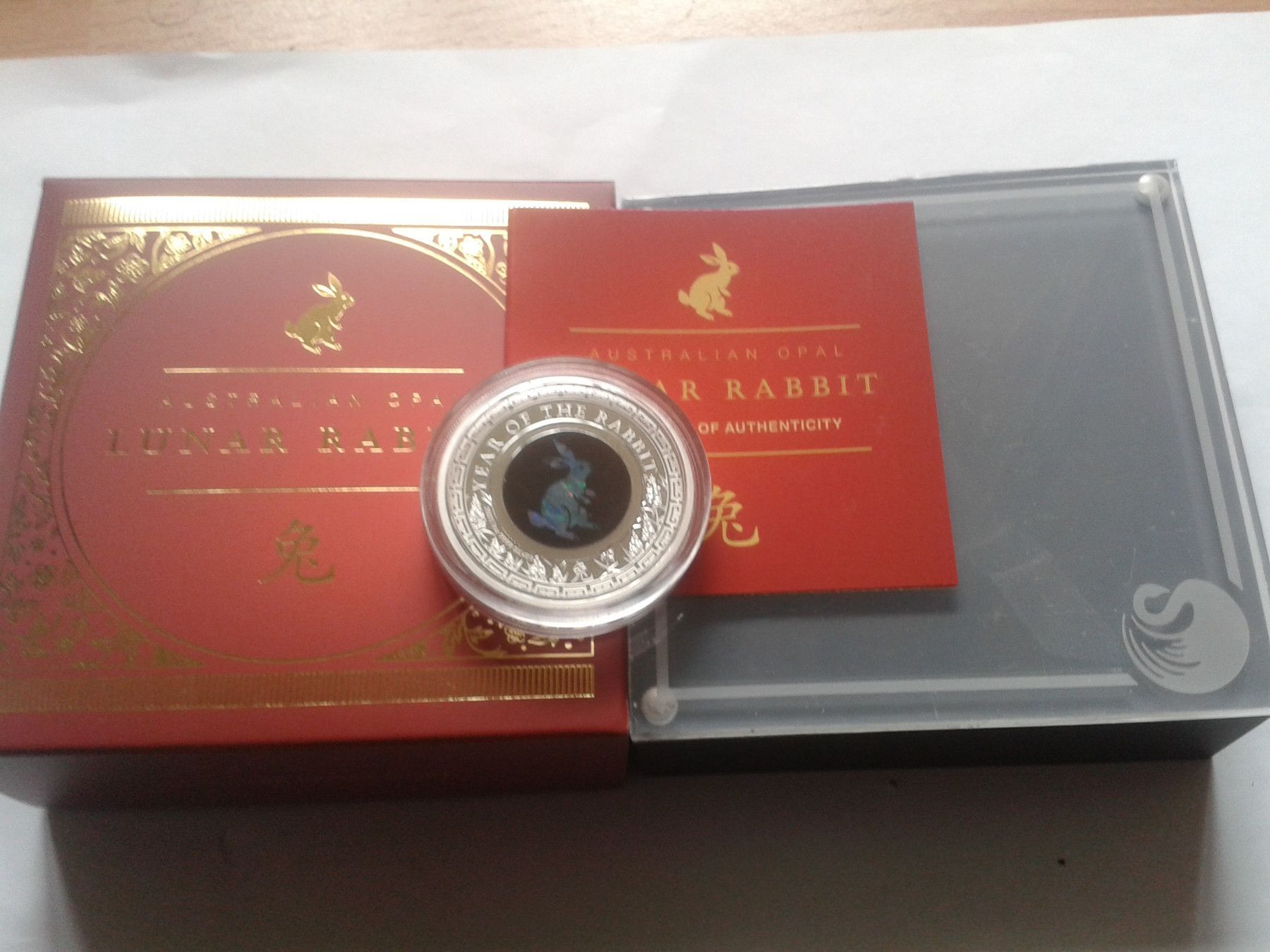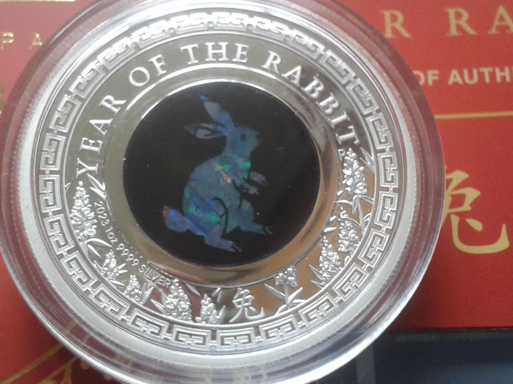 1$ 2023 PP Australien Lunar Hase Opal 31,1g Silber mit Beleuchtung 1 Dollar 2023