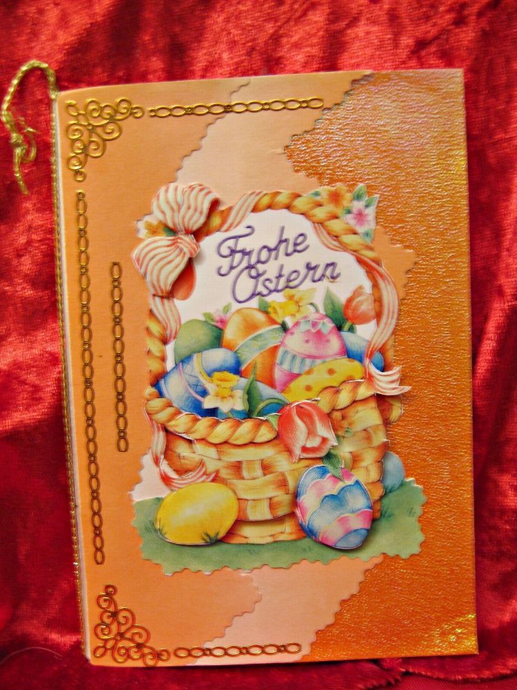 Sie bieten auf 1 Grußkarte Handarbeit Unikat Ostern mit 3D Motiven,wie auf dem Foto abgebildet und von mir selbst gefertigt Es ist eine Karte in der Mitte mit doppelten Einlegeblatt mit Kordel gebunden, mit Umschlag in Klarsichthülle Größe ca 15x10,5cm 18 g
