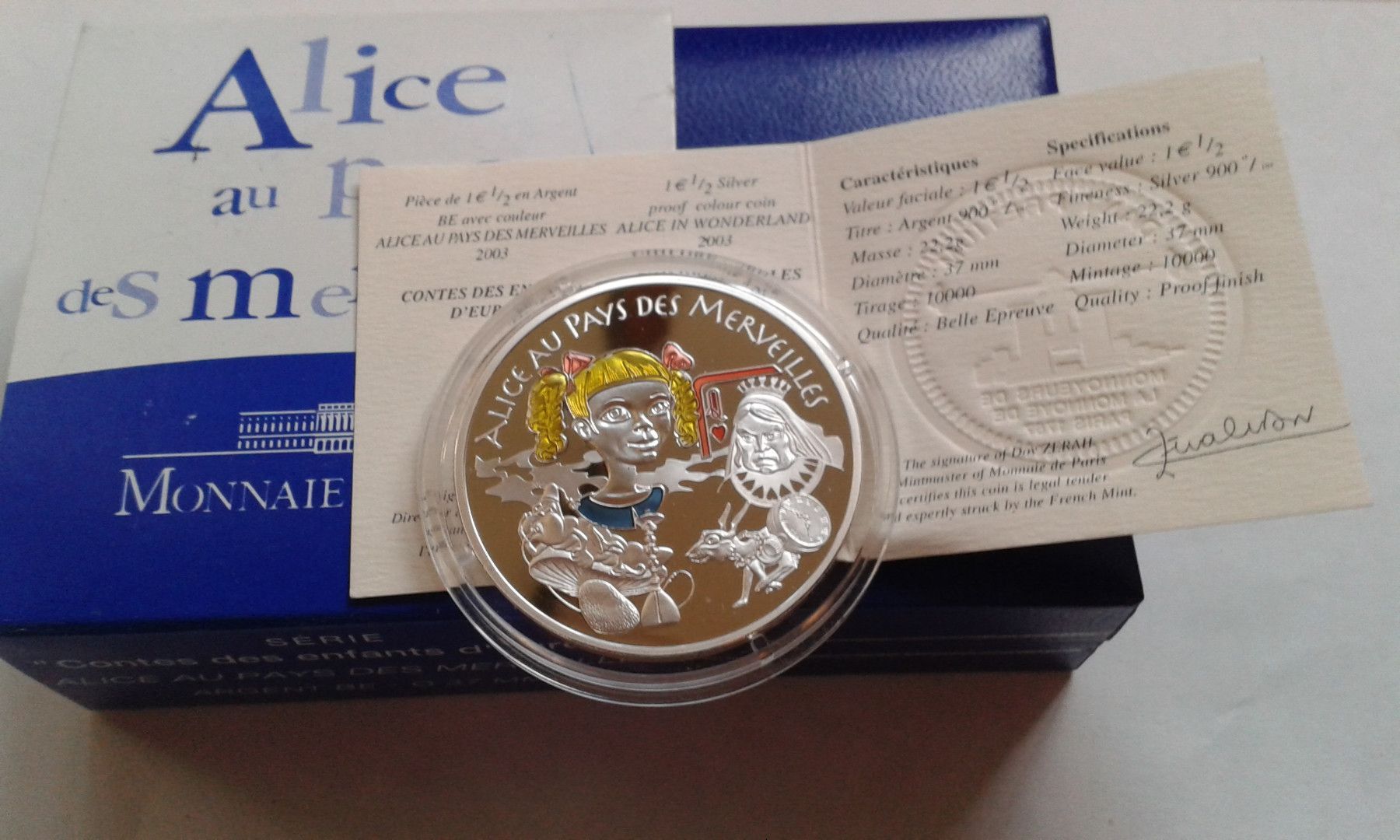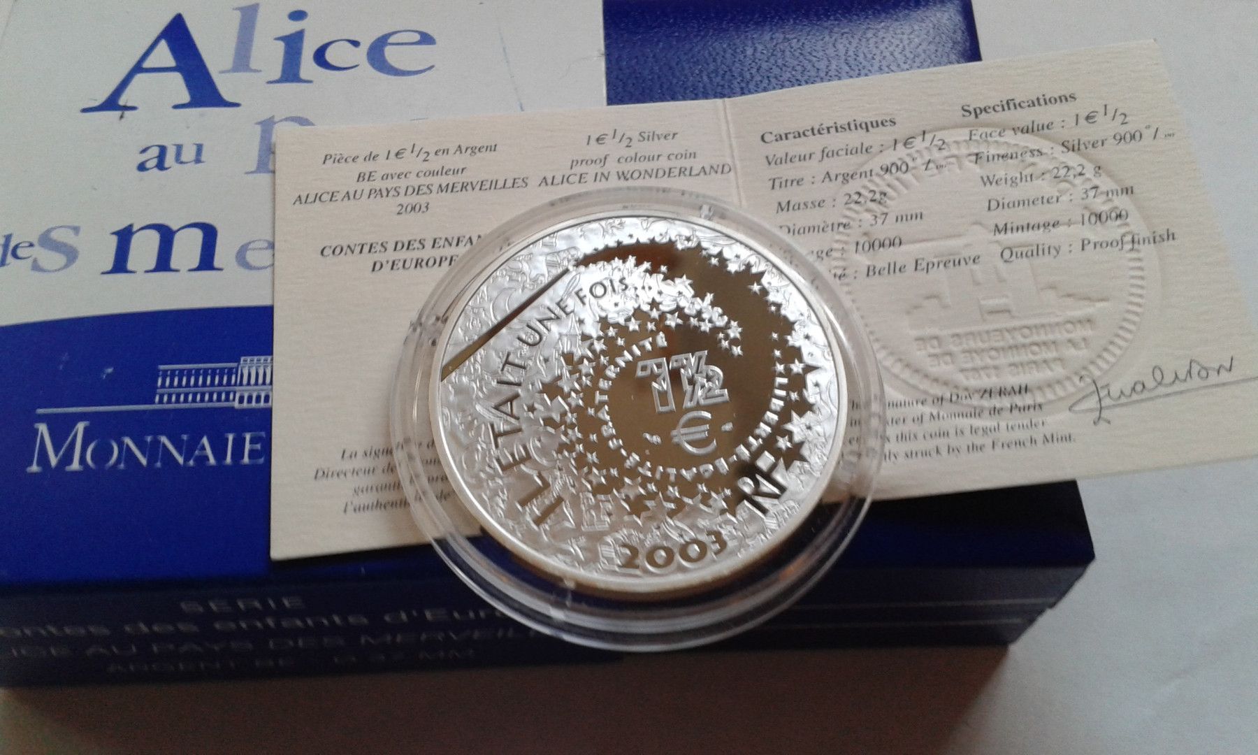 1,5 euro 2003 Frankreich Alice im Wunderland Märchenserie 2003, 22,2g Silber PP - RAR