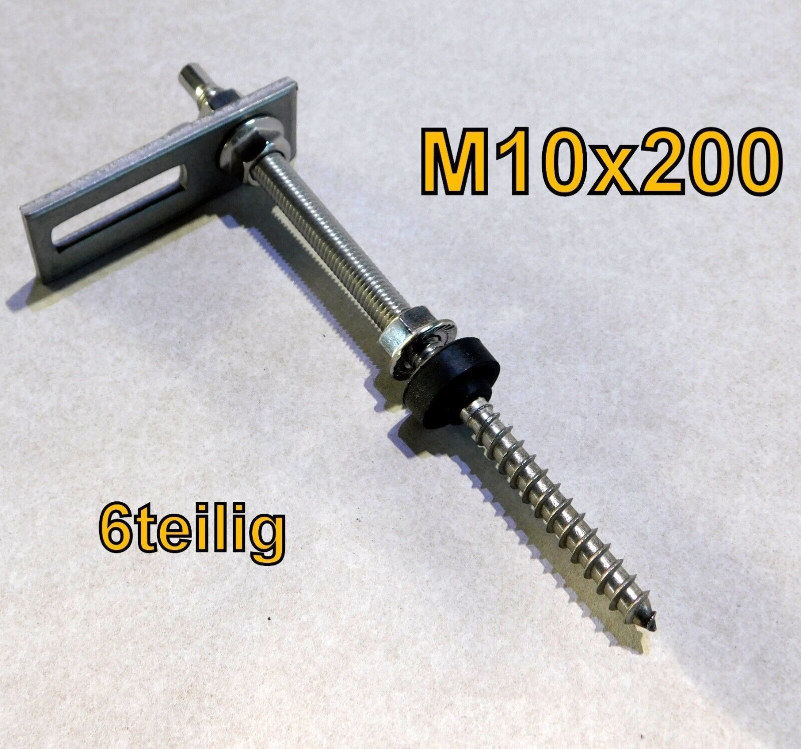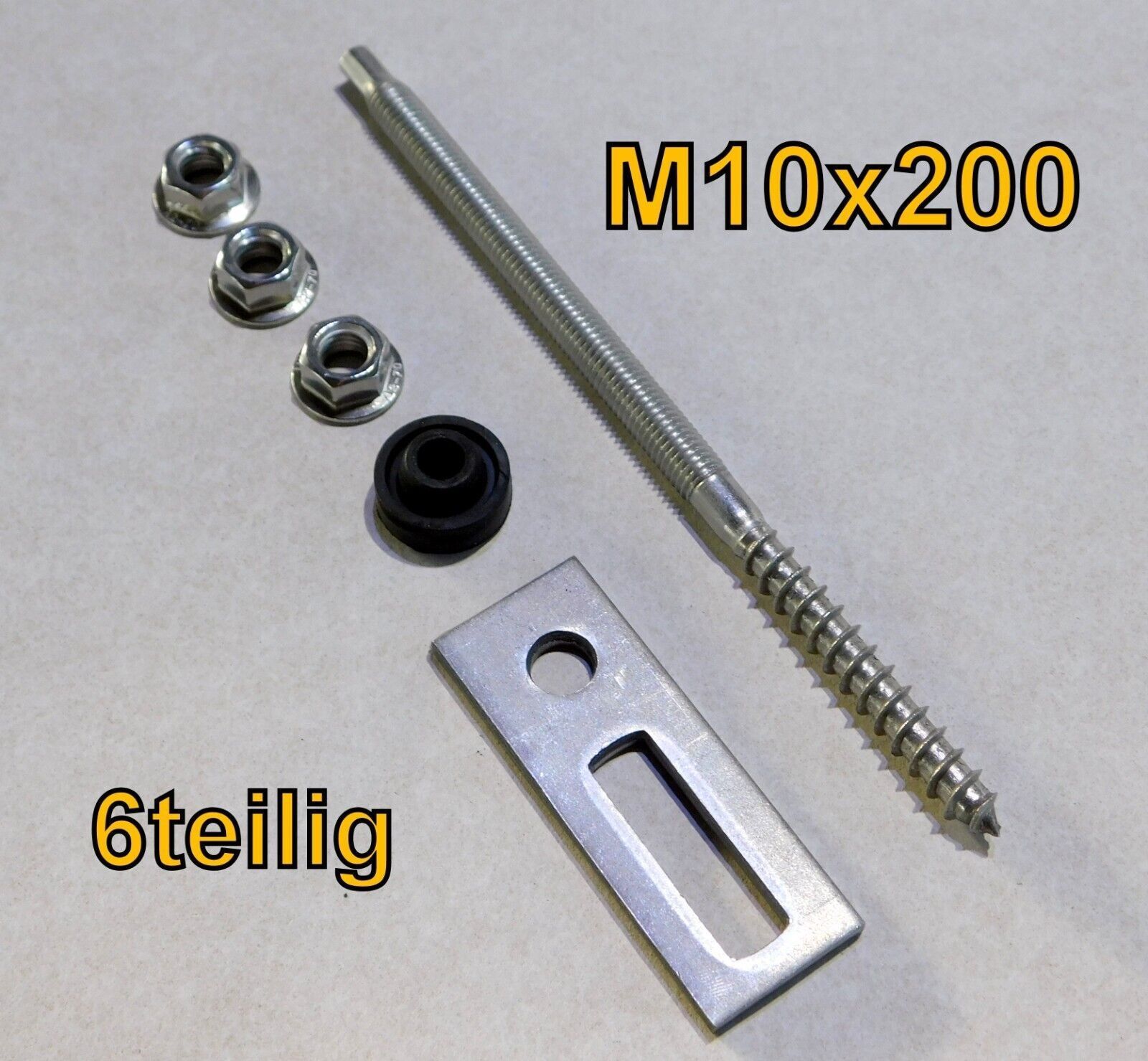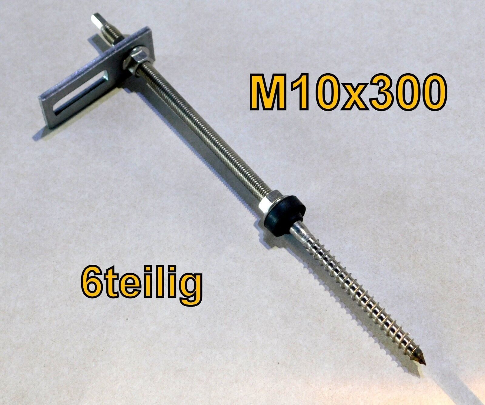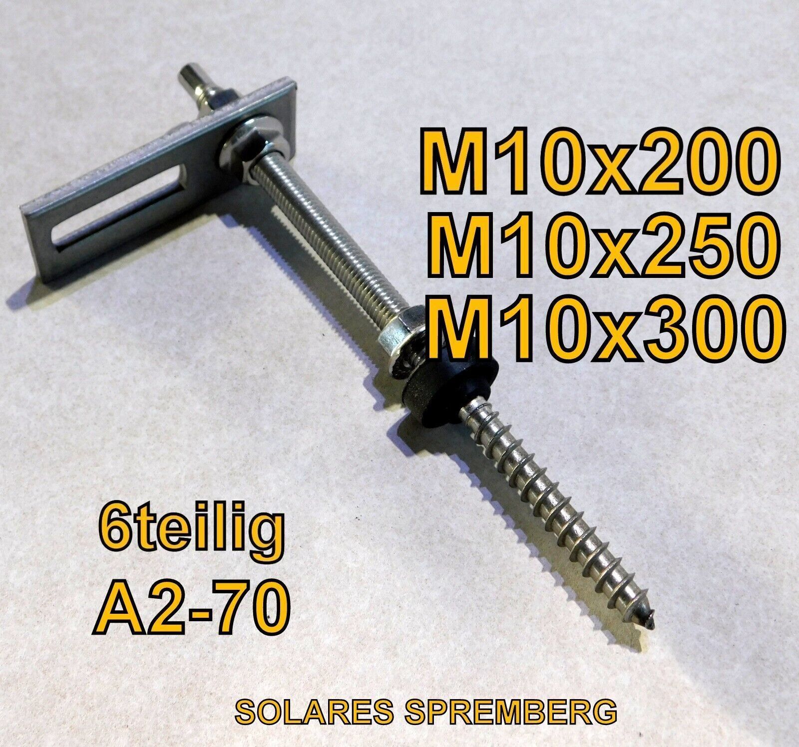 1-50x Stockschrauben M10x200-300 DIN 6923 Edelstahl A2-70 + Adapterplatte 6teilig PV
