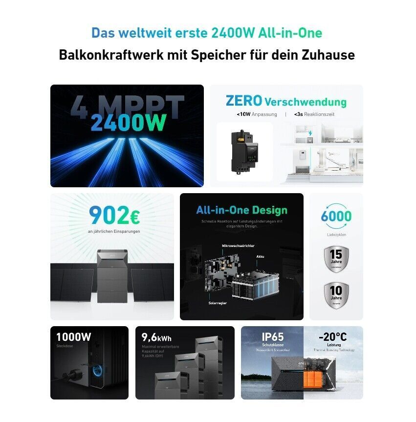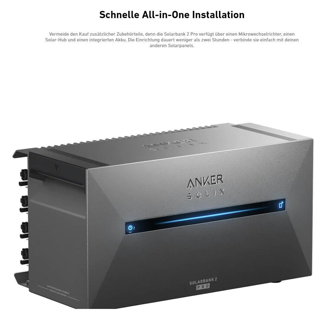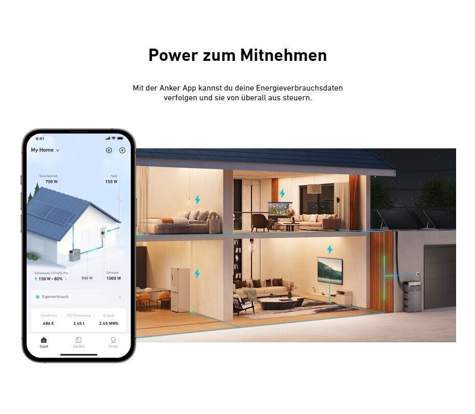 Anker 1,6kWh - 9,6kWh Anker SOLIX Solarbank 2 E1600 Solarspeicher mit Erweiterungsakku