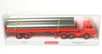 • Henschel Flachpritschensattelzug mit Röhrenladung (leuchtrot) 1955-1961 1:87 Wiking
