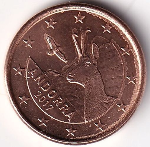 1 Cent Münze Andorra- 2017 - "Pyrenäen-Gämße und Greifvögel"