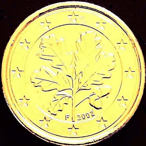 1 Cent DEUTSCHLAND 2002 F vergoldet als Glücksmünze, Jux, Gag, Glückbringer, Neujahr etc. Erhaltung: XF Material: Stahl vergoldet (wahrscheinlich galvanische Vergoldung, keine Garantie dafür, habe keine Möglichkeit es zu prüfen) Gewicht: 2.32 g Durchmesser: 16.25 mm Dicke: 1.67mm Rand: glatt Katalog