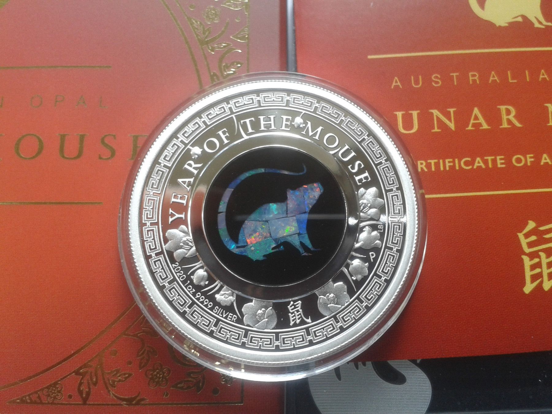1 Dollar 1$ 2018 PP Australien Maus Lunar Opal Serie 31,1g Silber mit Beleuchtung