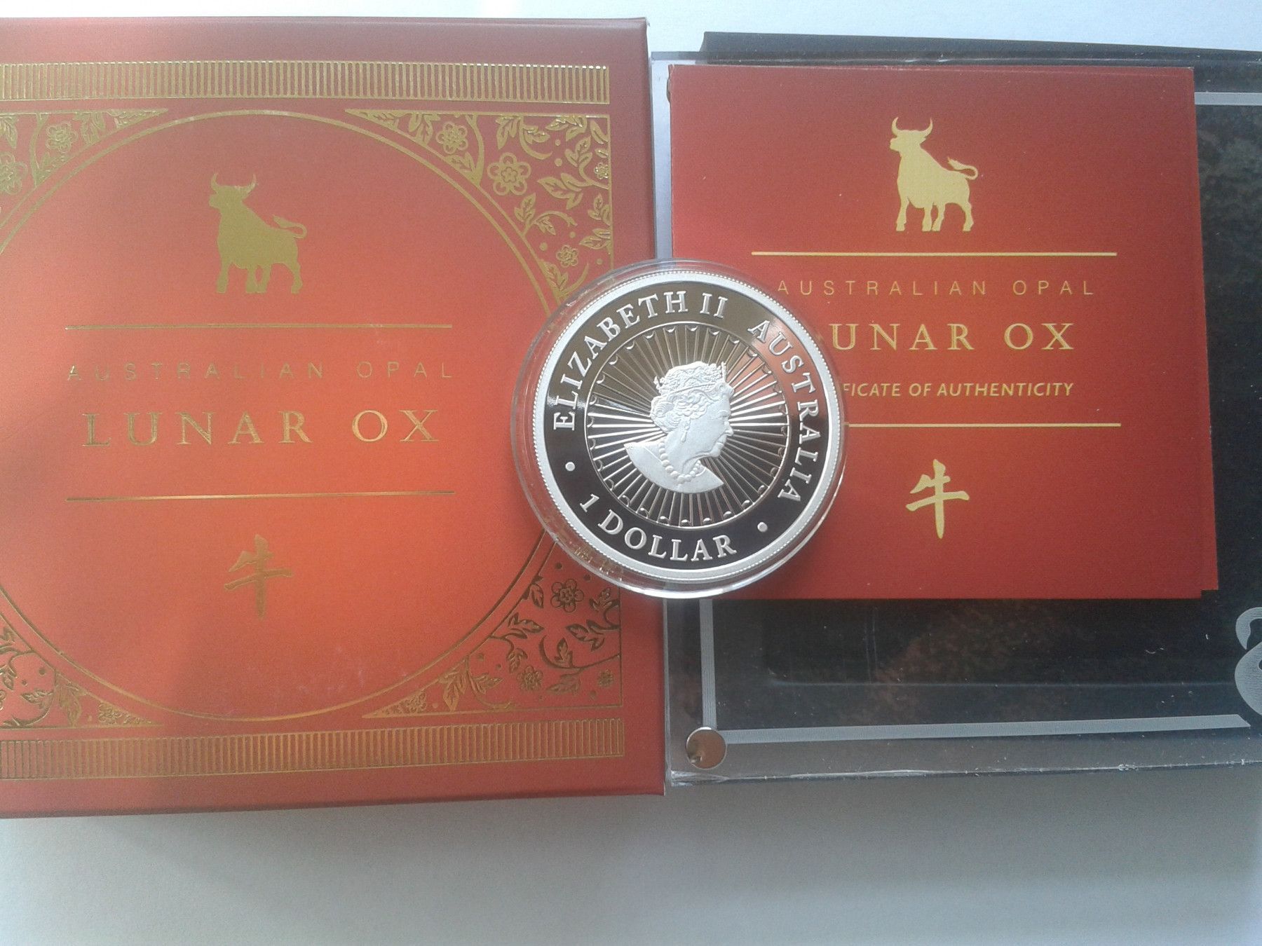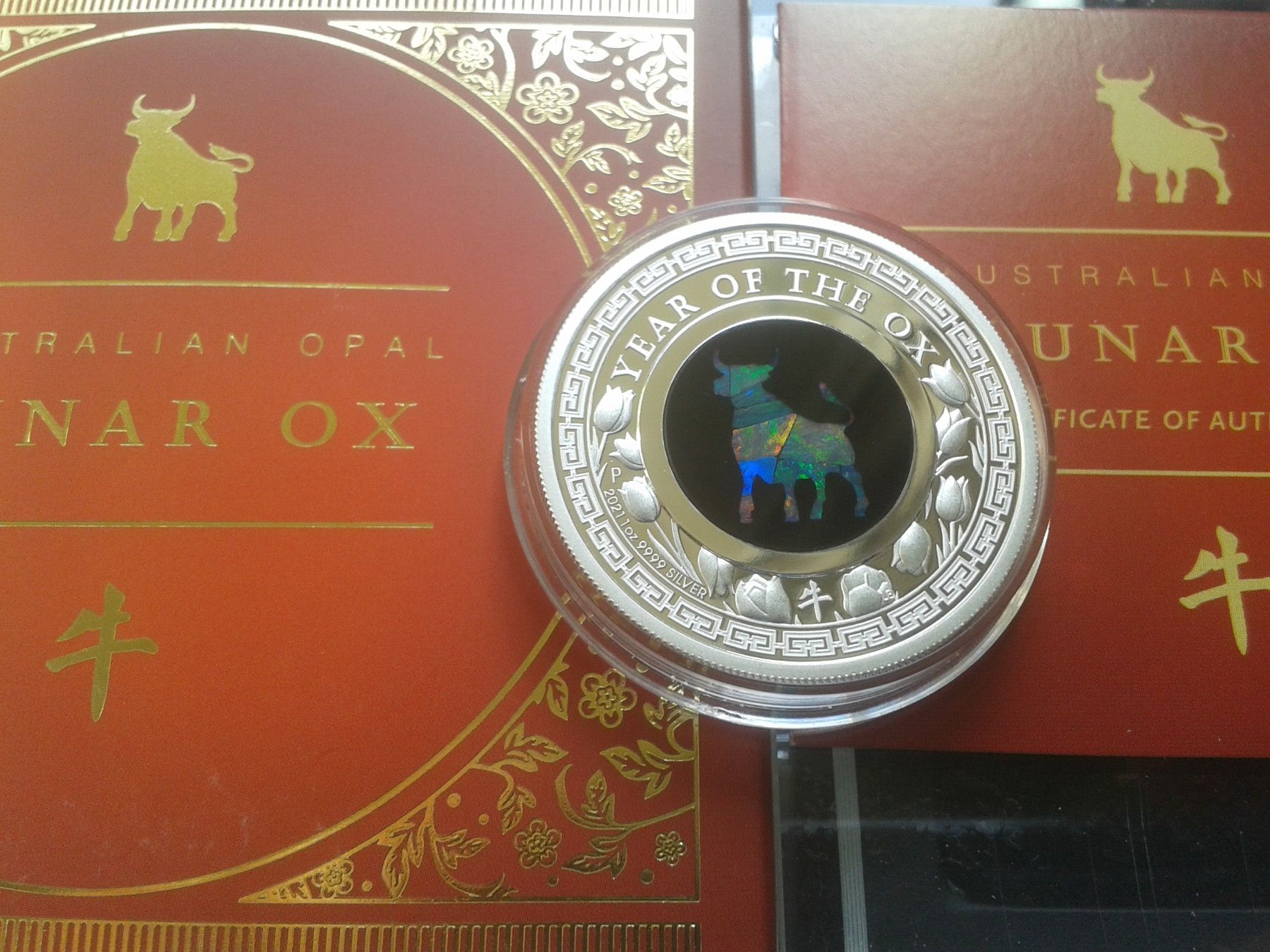 1 Dollar 1$ 2021 PP Australien Lunar Ochse Opal Serie 31,1g Silber mit Beleuchtung